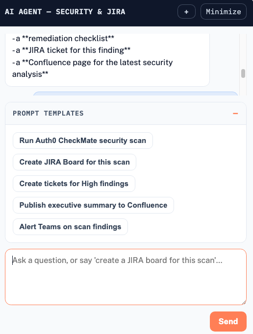 - Prompt-driven scanning — trigger Auth0 CheckMate scans with a single natural language instruction