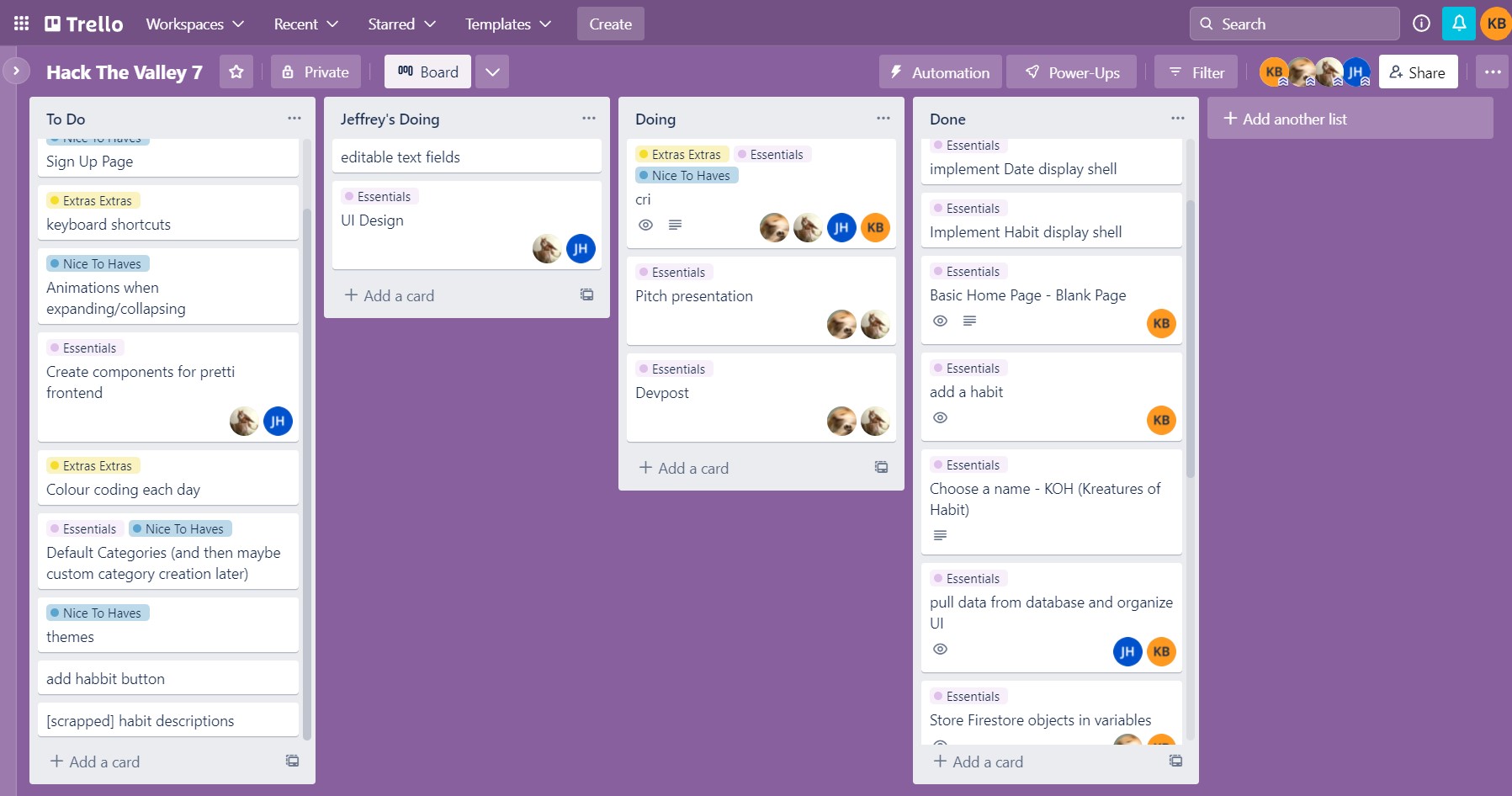 From the beginning, we were determined to plan our project very carefully - we were all familiar with the problem of coding something without planning and then running into issues much later on that are caused by a flaw in the basics of the implementation. We were able to give ourselves the peace of mind to think of lots of additional features we could add to our project along the way without worrying that we would have to refactor code in order to do so. Otherwise, we were very proud of our ability to work as a team - though we hadn't explicitly discussed team roles or responsibilities ahead of time, each person's individual contributions felt balanced and complementary. We kept good track of the milestones we completed using Trello as we went to stay motivated and on task. We are also proud that we were able to deploy our app fully on GitHub Pages and still be able to connect to the database with new users, habits, and updates.
