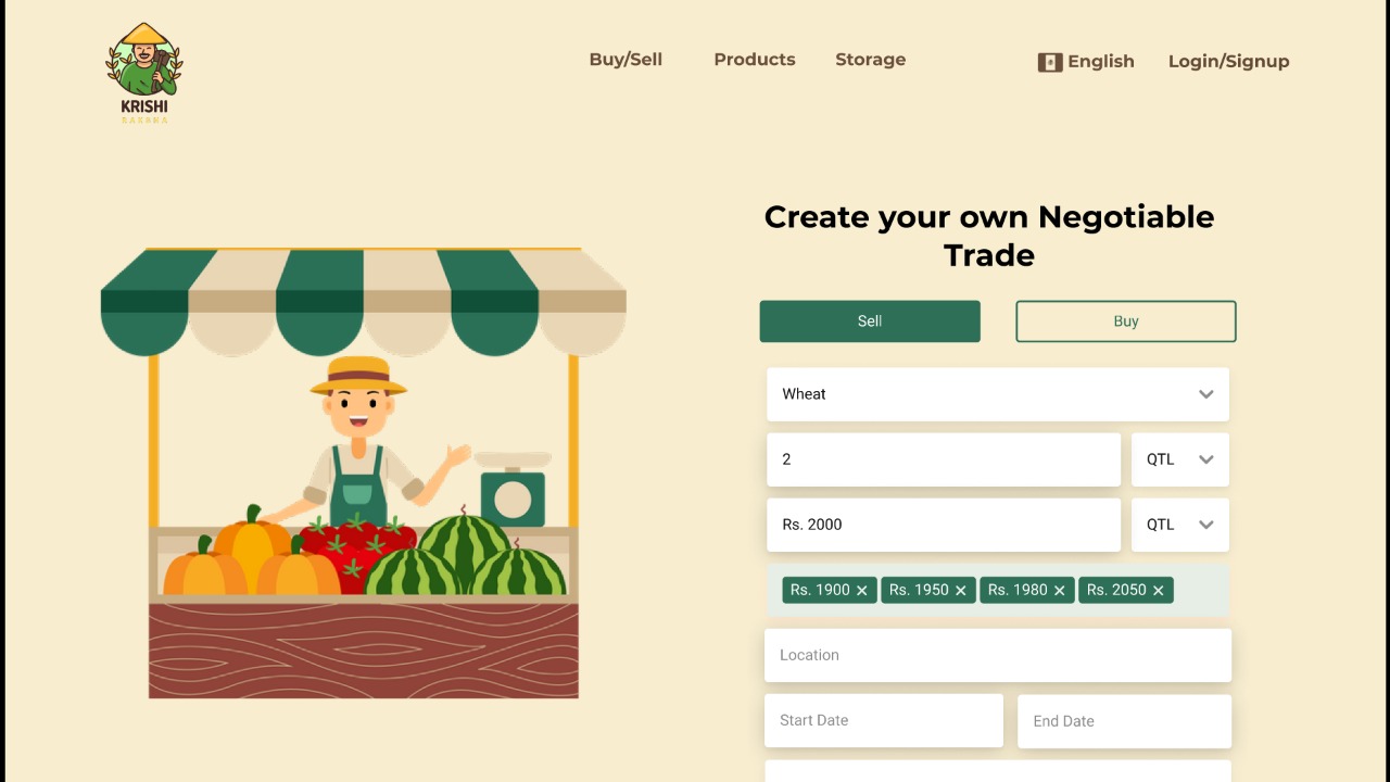 We are providing the solutions in the form of a “seller-heavy” application that gives the chance to the farmer to digitize from the reach of his comfort zone. the farmer can use our application in their own preferred language, choose an optimum price for his harvest to maximize their profit. They can also get info about the storage facilities available within their locality along with the transportation facility provided through our app.
