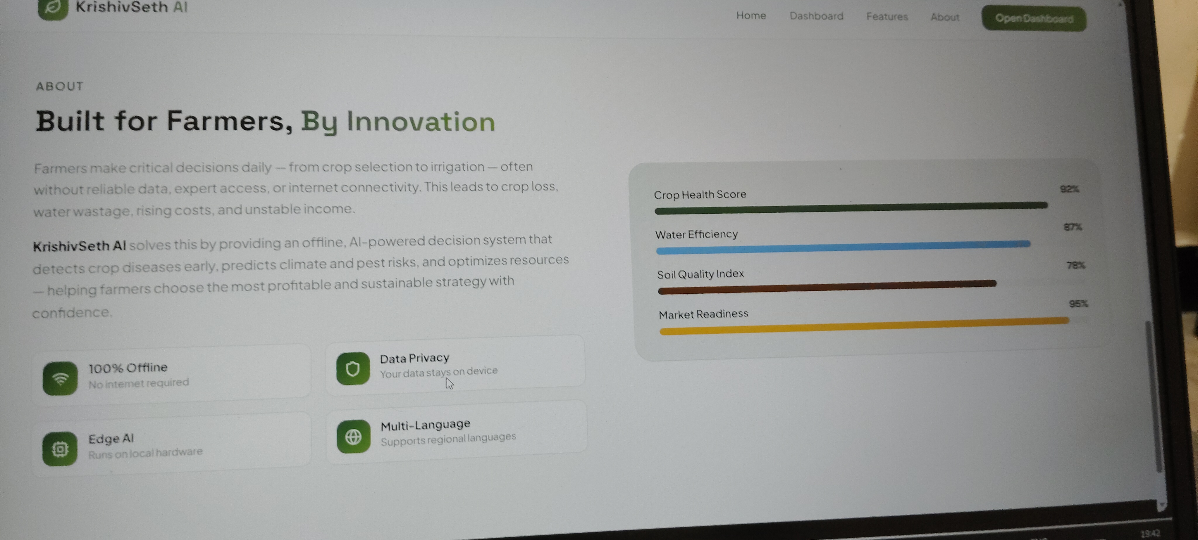 Late disease detection Unpredictable weather Poor market price awareness Excess fertilizer usage Lack of localized advisory Our mission is making AI accessible to every farmer using only a smartphone.