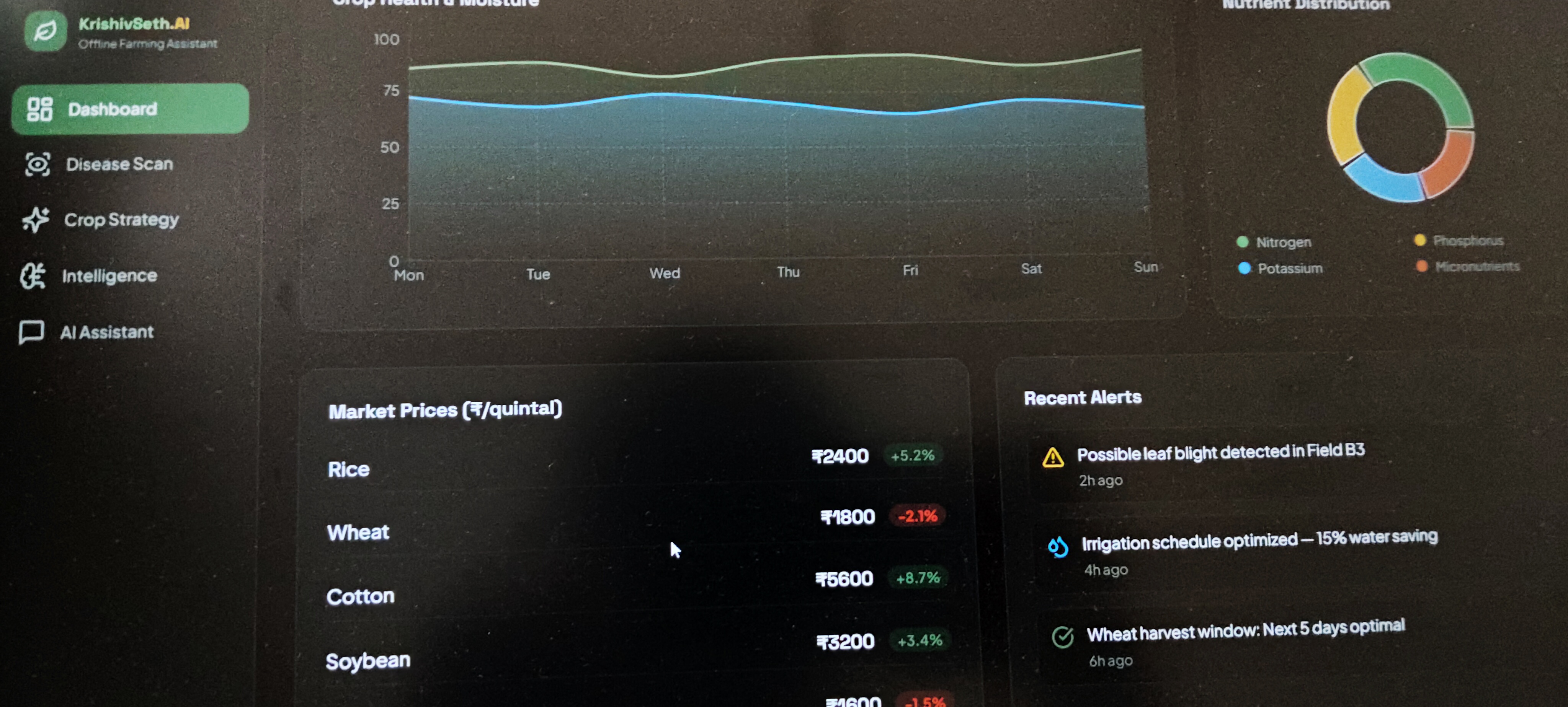 In many villages, farmers don’t fail because they lack effort — they fail because they lack predictive intelligence. They decide crops based on tradition, not data. They sell in mandis without knowing future price trends. They overuse water and fertilizers because advisory systems are generic, not hyper-local. After studying platforms like Crop in and nurture farm, we noticed something critical: They provide data, but not decision optimization. There is no system that answers: “What should this farmer grow, this season, on this land, to maximize net profit with minimal risk?” That gap inspired us to build an AI-driven agricultural profit engine — not just an advisory app, but a decision-making system that predicts ROI, optimizes inputs, and connects farmers directly to high-value buyers. We believe farming should move from guesswork to algorithmic precision.