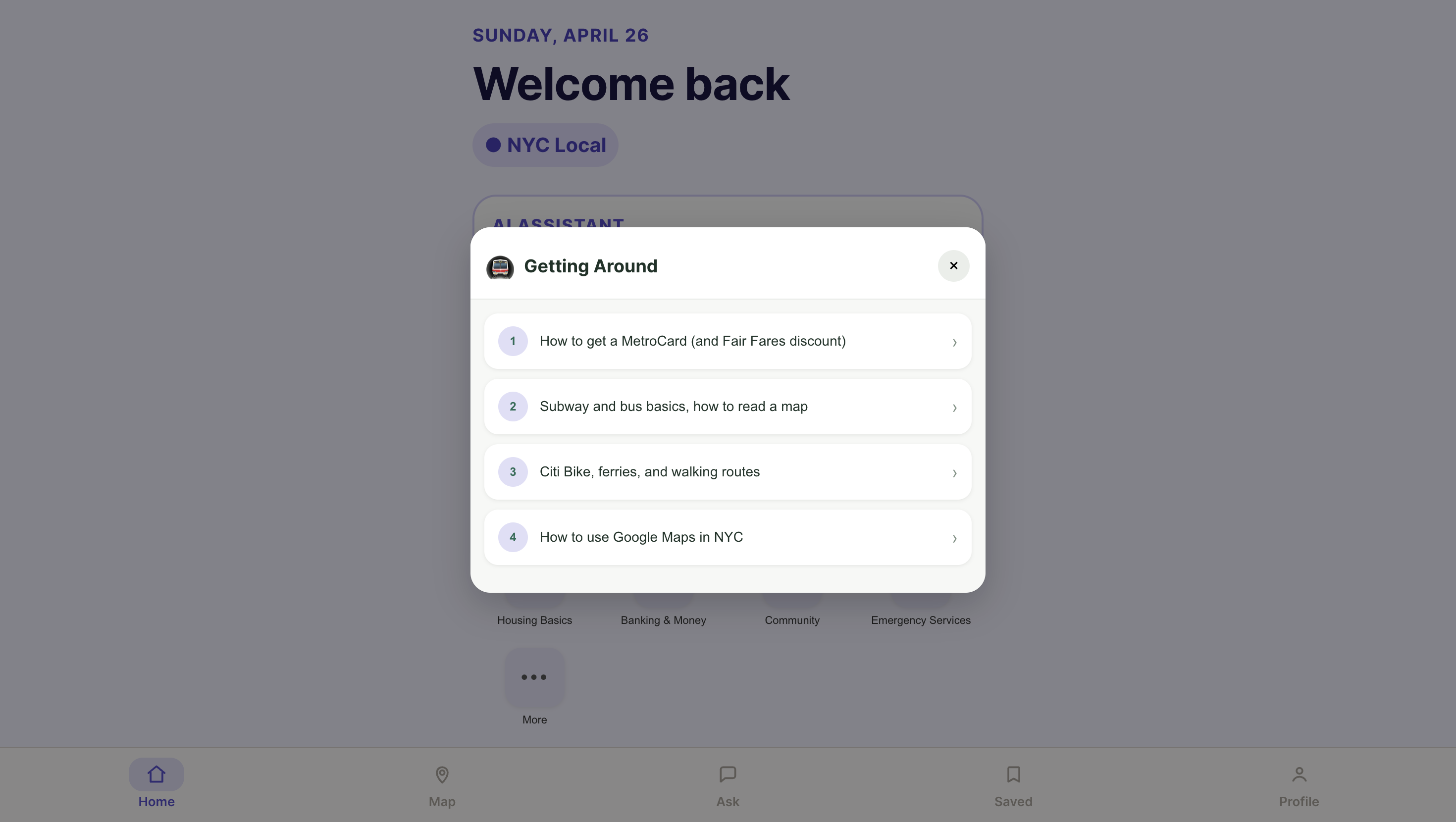 - 🤖 AI Assistant (powered by Claude) — Ask anything about NYC in your language, get a real and helpful answer back instantly