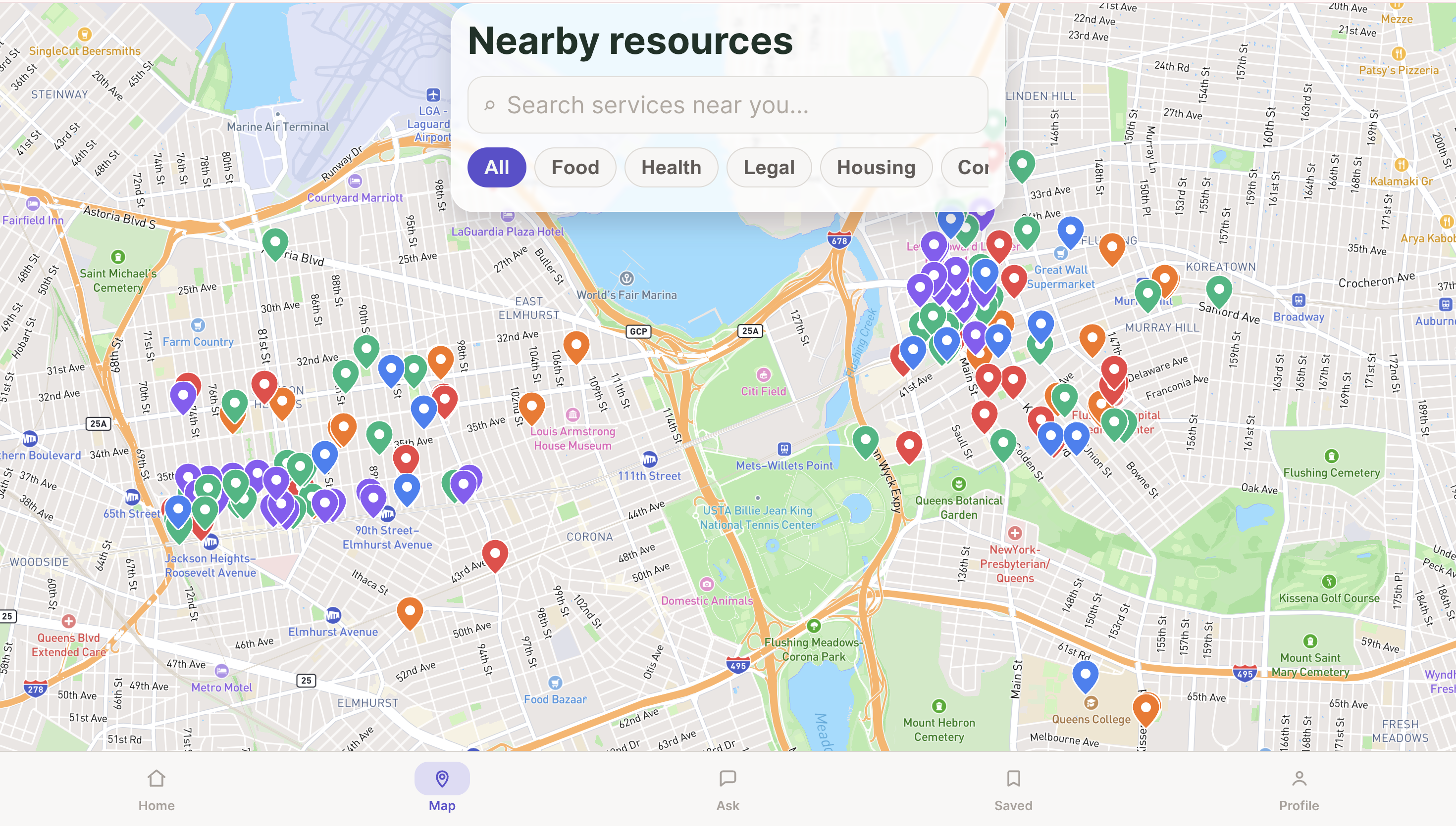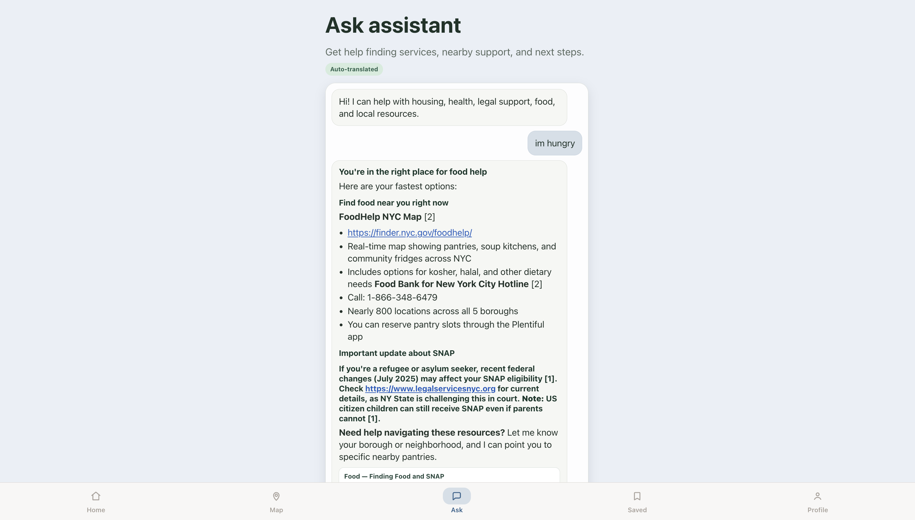 - 🗺️ Neighborhood Resource Map — Real NYC clinics, food pantries, legal aid offices, and community centers pinned near the user's location