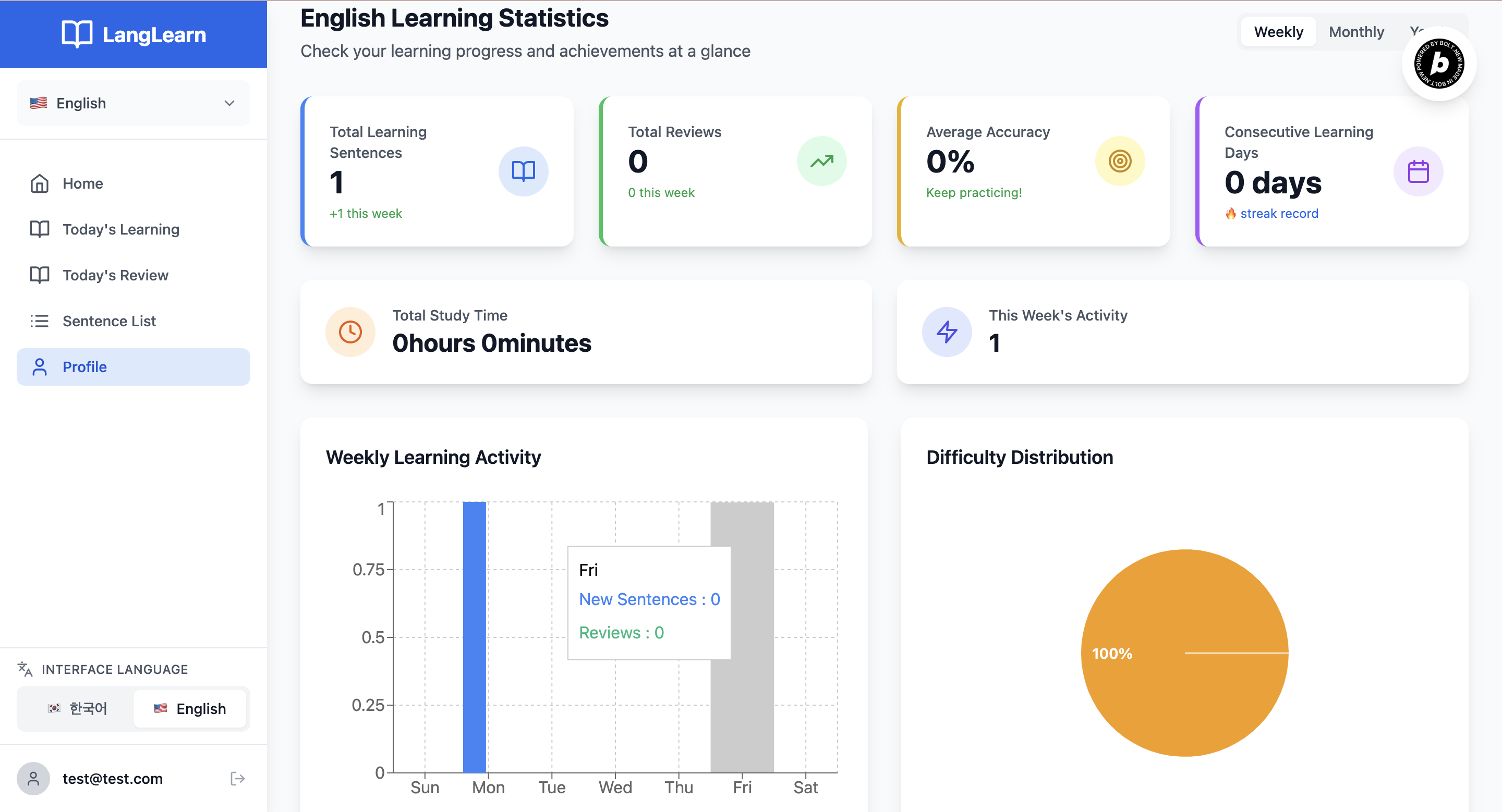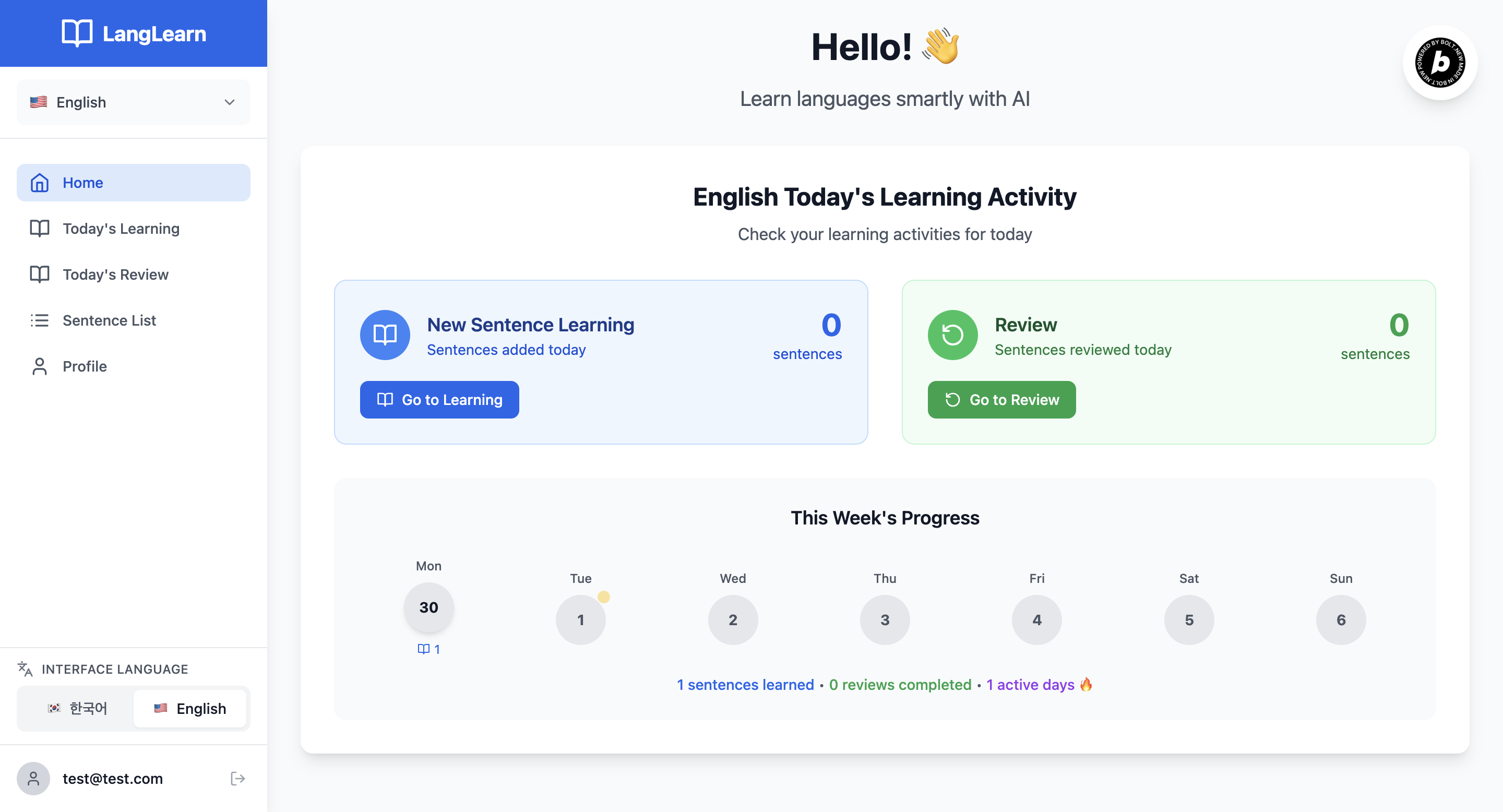 While studying English through dramas and YouTube, I often jotted down useful sentences I wanted to remember—using Notion or sticky notes. But since I’m not good at organizing, I struggled to find those notes later. Another issue was that idioms and slang were often hard to look up in a dictionary, and interpreting them one by one with ChatGPT was time-consuming. That’s why I built this platform: to store and review sentences in one place, and to get AI-powered interpretations of idioms and slang.