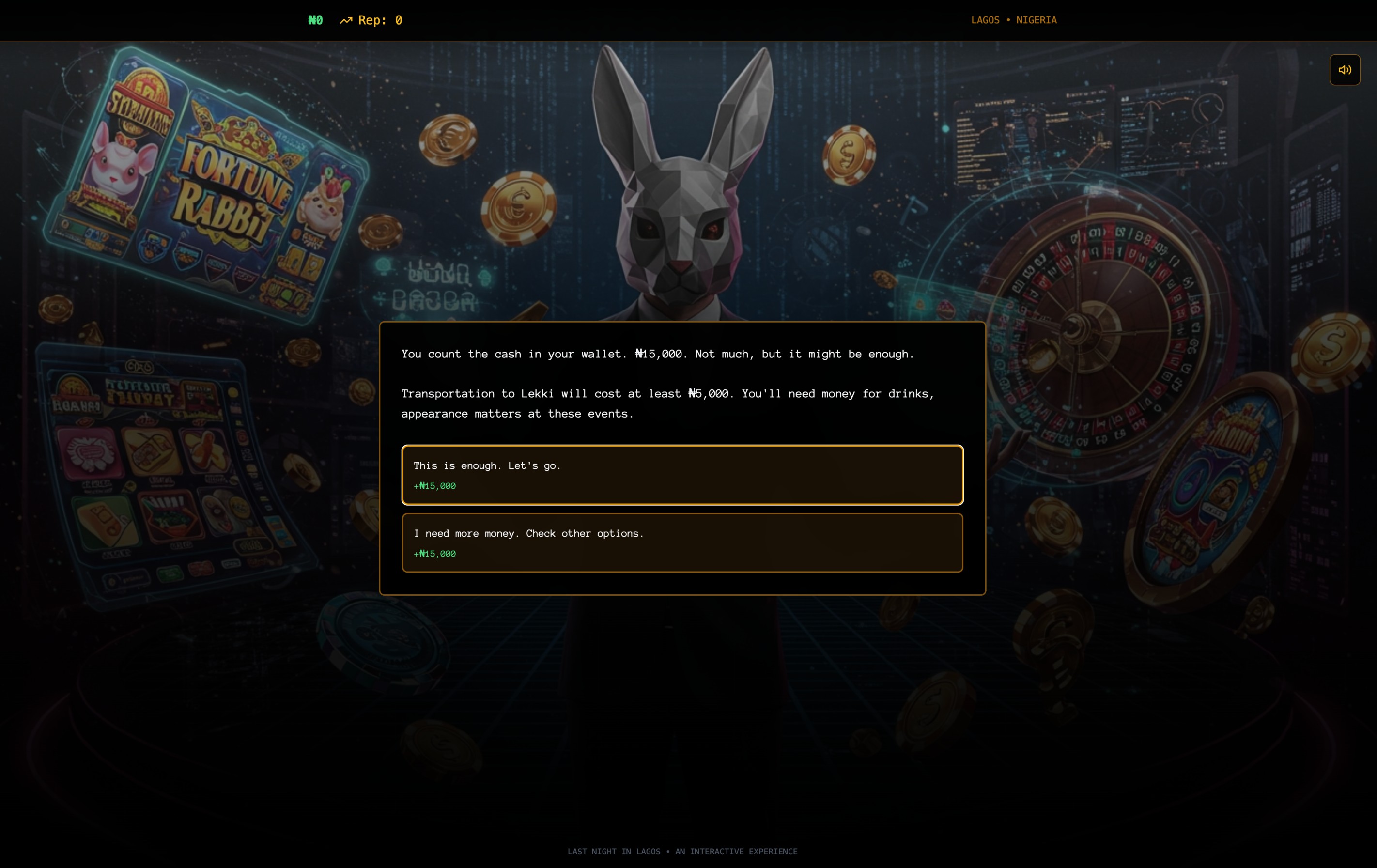 As Dami steps out into the neon-lit night, the city becomes both his pathway and his obstacle. Players navigate his journey through chaotic traffic, unexpected police stops, dodgy shortcuts, and the colorful characters that define Lagos nightlife, Danfo drivers bargaining at impossible hours, street vendors hustling under flickering streetlights, and friends who may or may not have his best interest at heart.