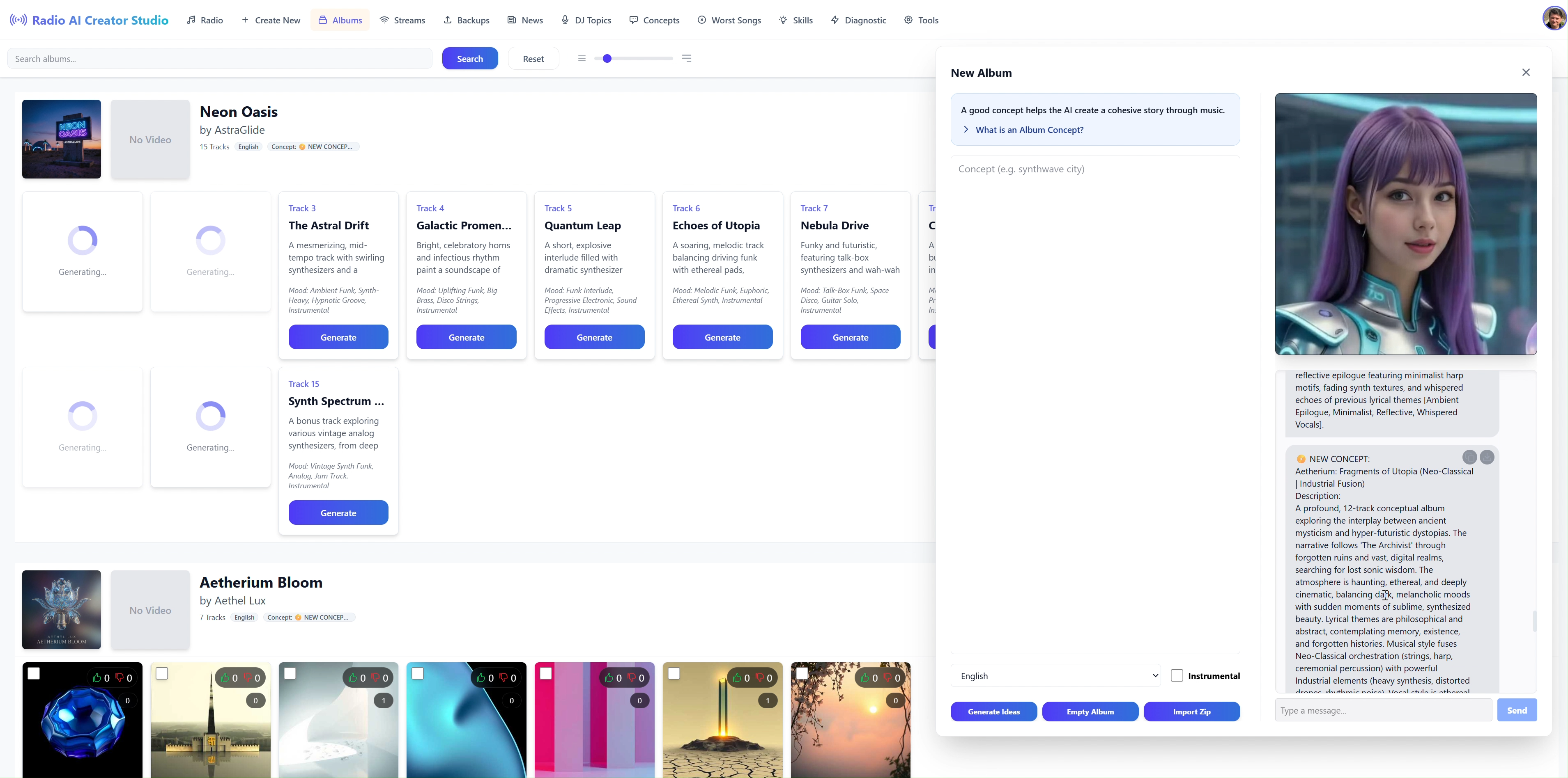 Structured Output: Once a concept is finalized, she "prints" a full production package, including narrative, musical style tags, and visual art prompts.