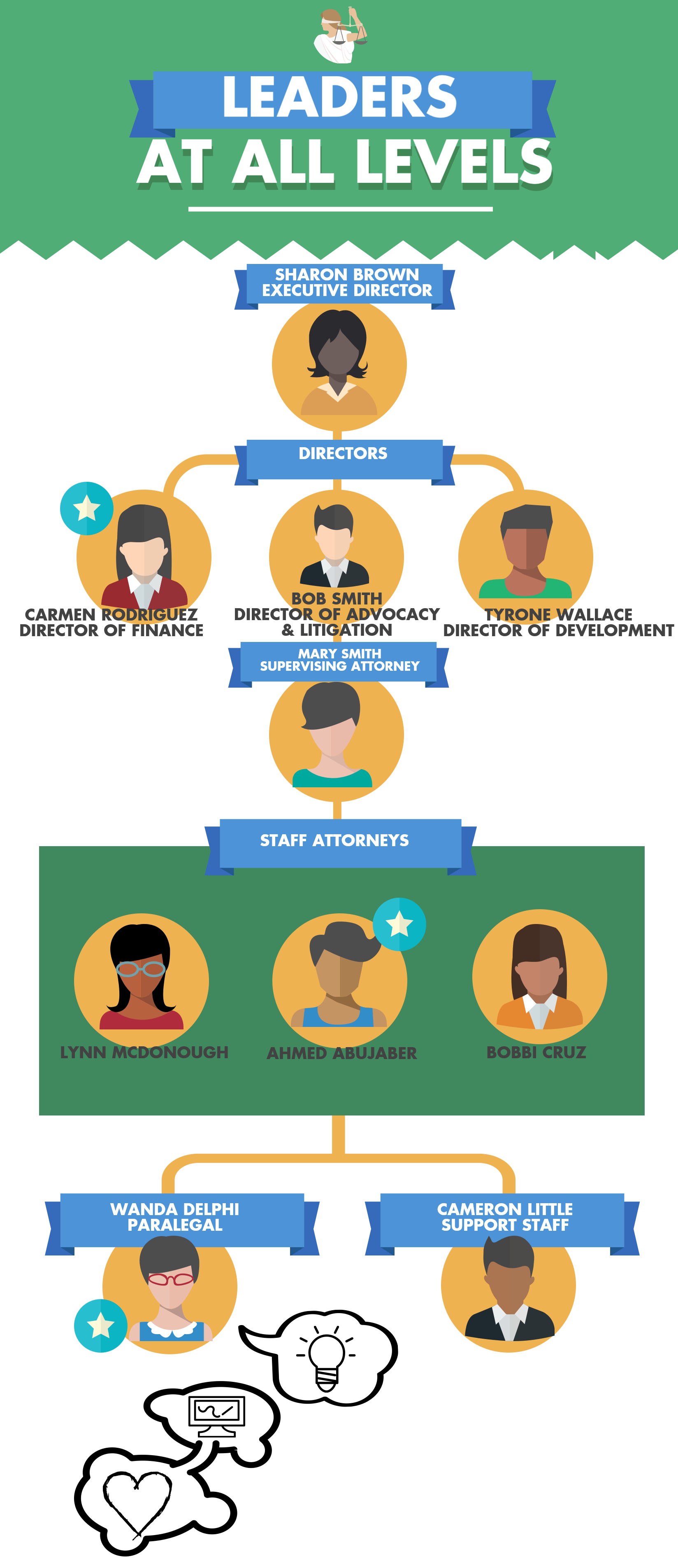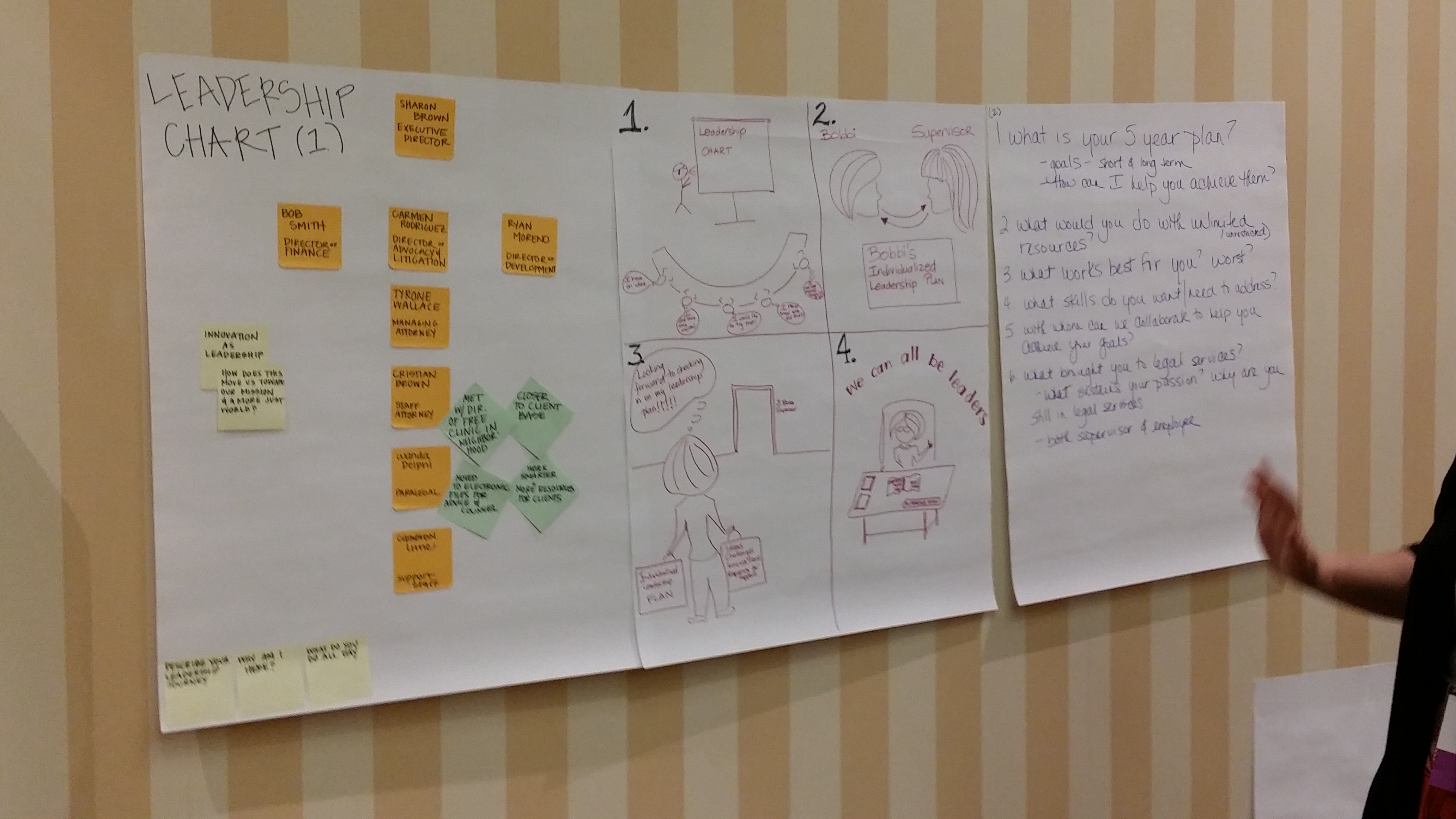With "Leaders at all Levels" implemented in her organization, Bobbi will hear examples from others who have instituted an innovation in their position at staff meetings. Discussion will include how that person came to legal services, what motivates him to stay, what they do every day, and how their idea benefits the organization and their clients. The goal of these meetings is to highlight success stories and to motivate others to see the leadership potential in themselves. They should continue throughout the year.