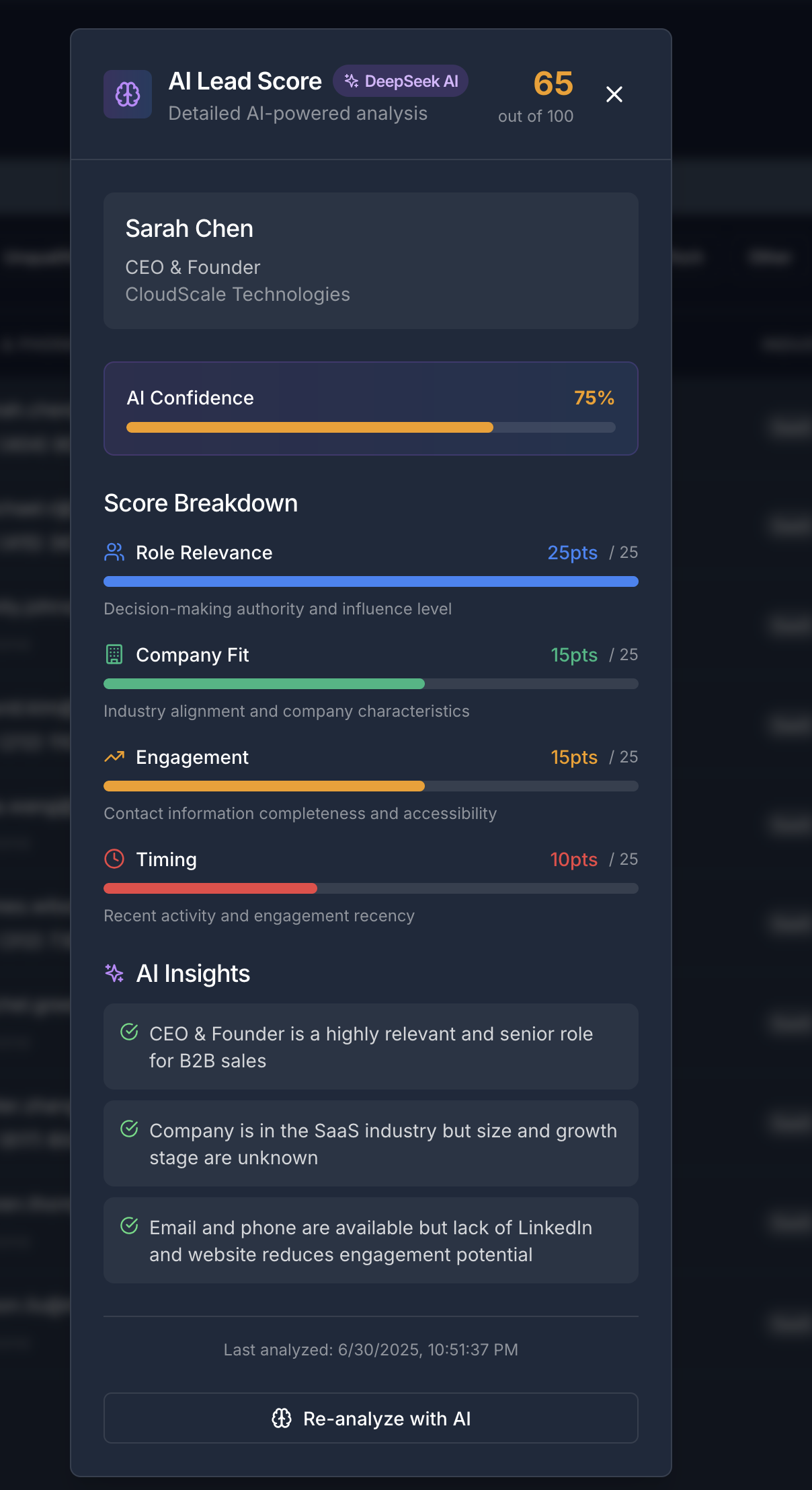 - AI-Powered Lead Scoring: DeepSeek integration analyzes lead behavior and provides intelligent prioritization