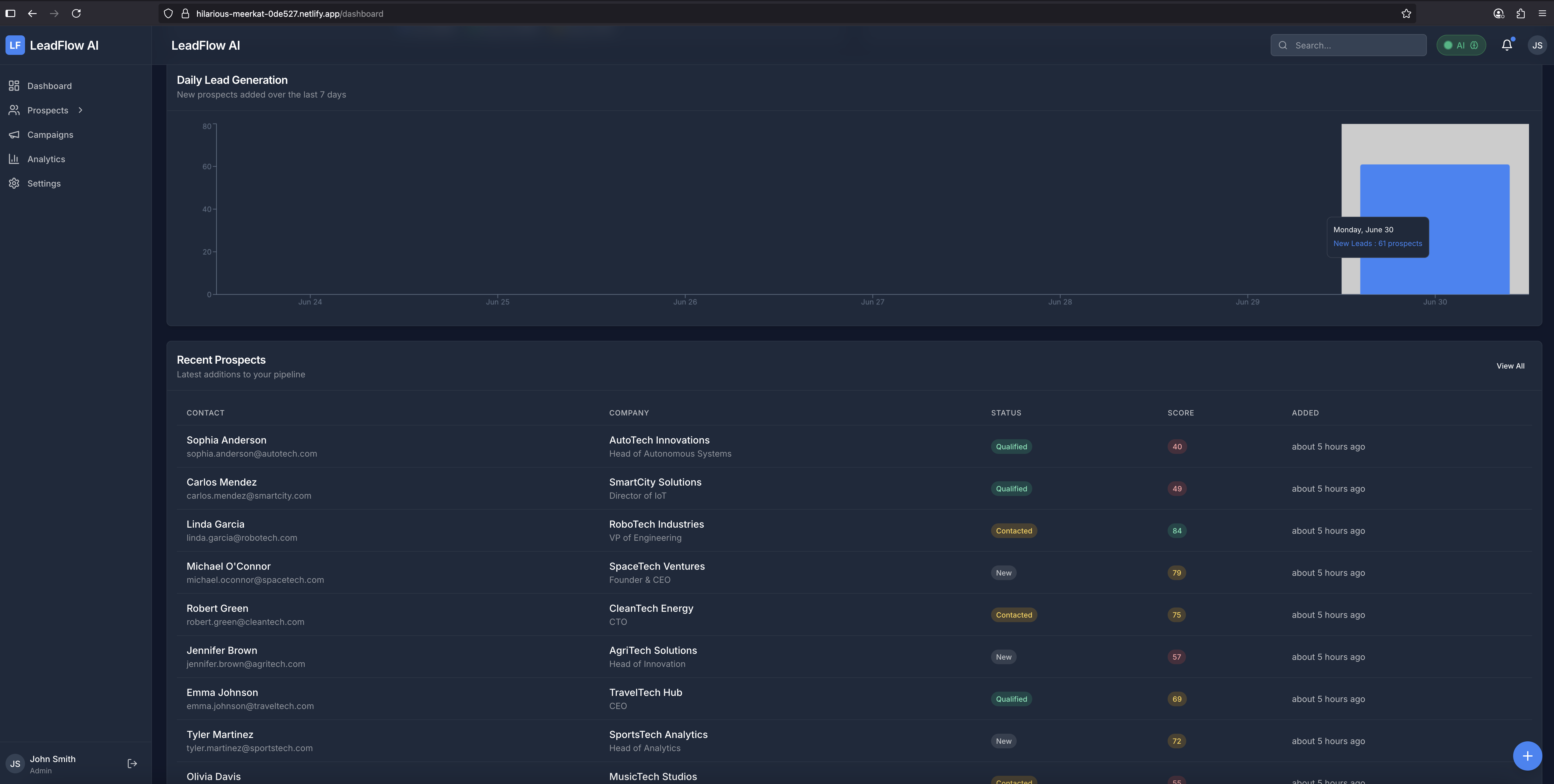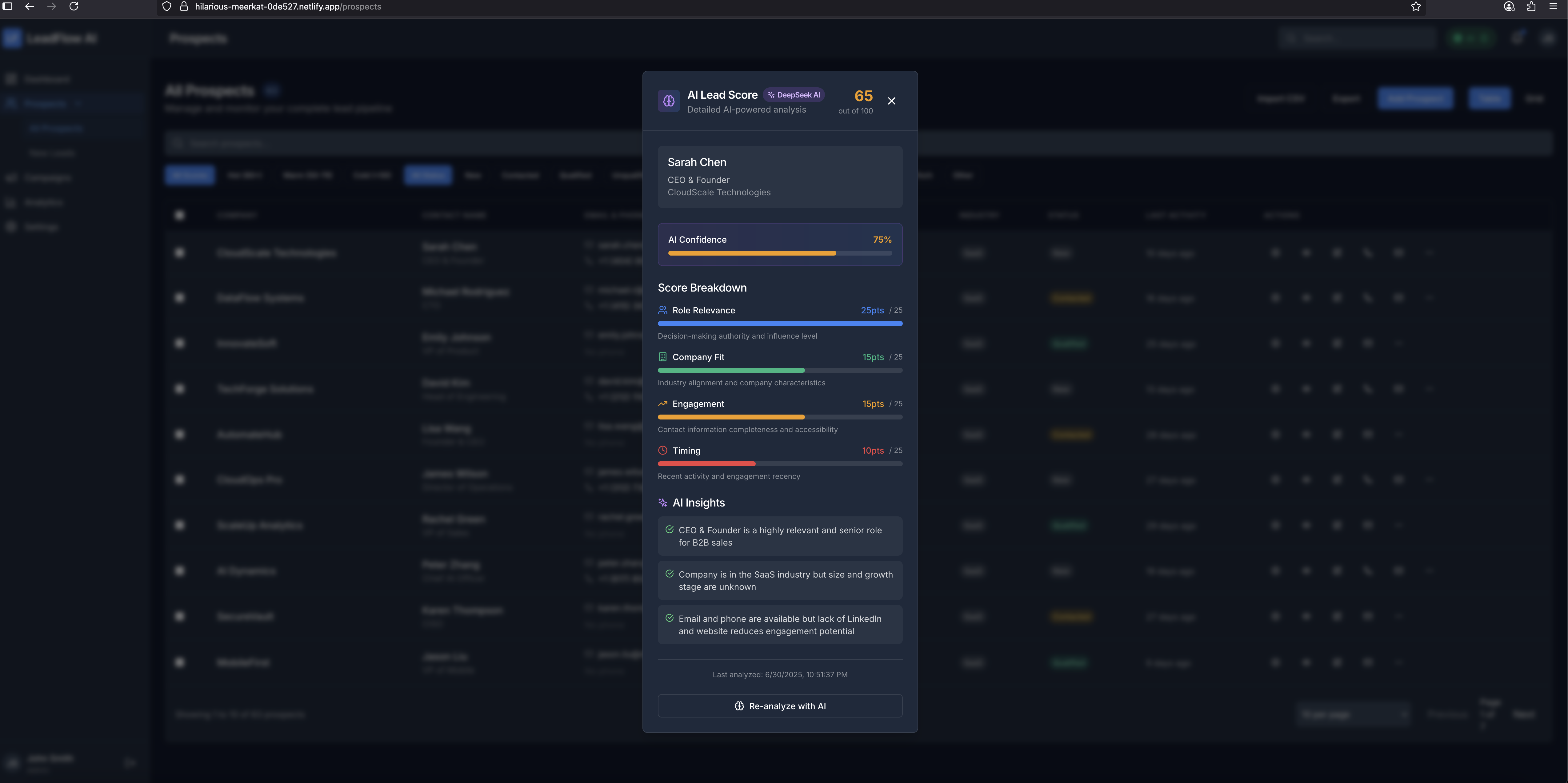 - Achieved seamless AI integration with actual lead scoring capabilities
