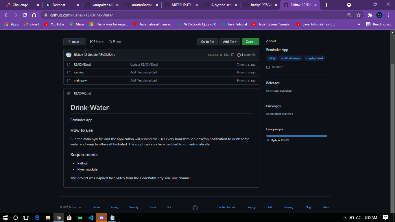 Learn to Stay Hydrated Inspiration What it does Learn to Stay Hydrated How we built it Challenges we ran into Accomplishments that we're proud of What we learned What's next for Learn to Stay Hydrated Built With python Try it out github.com