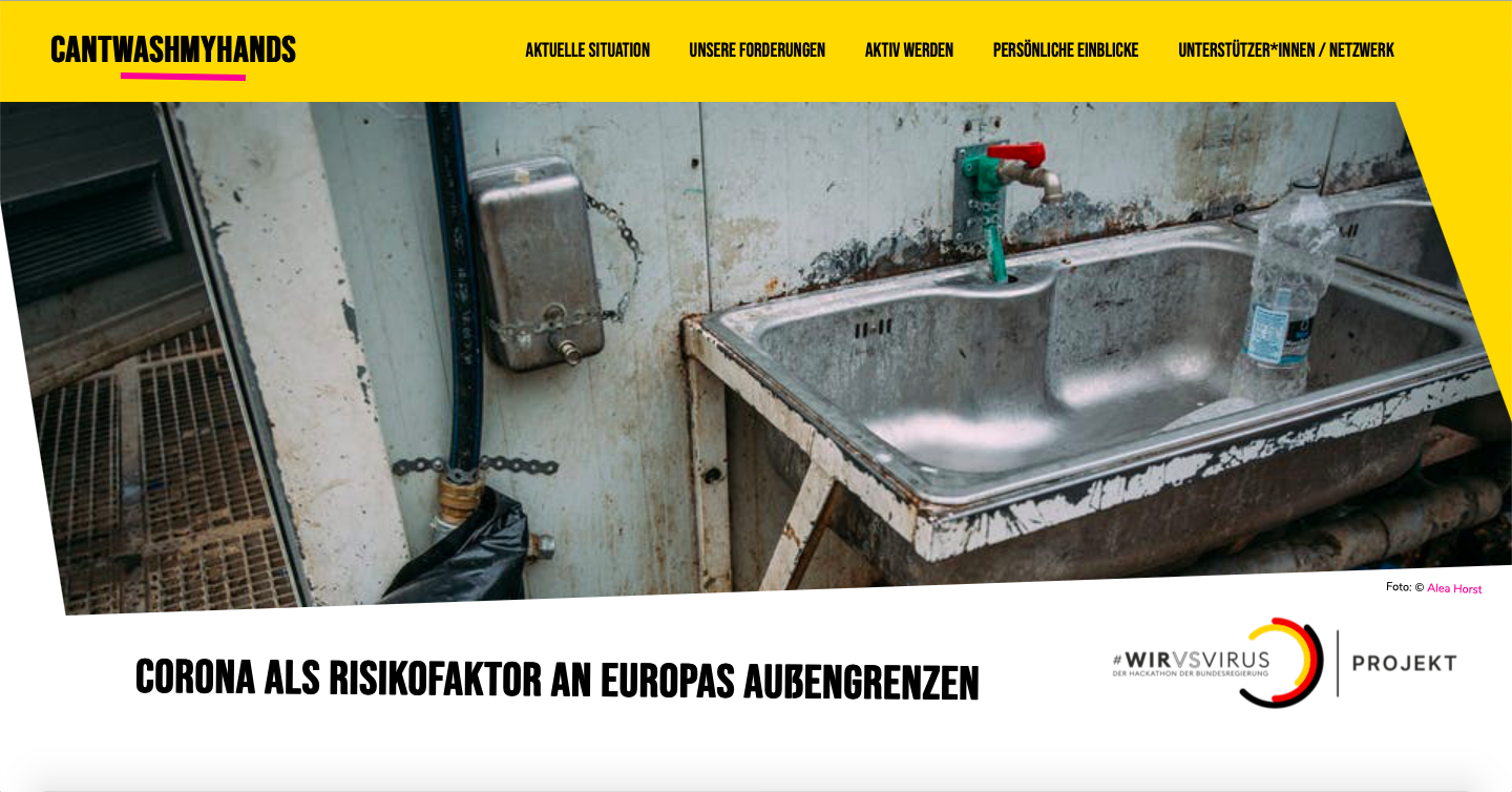 Eine schnelle und effektive Lösung, um zum Handeln aufzurufen und bereits bestehende Initiativen miteinander zu vernetzten, bietet unsere Can´t Wash My Hands Website, die wir im Rahmen des #WirVsVirus-Hackathons der Bundesregierung erstellt haben.