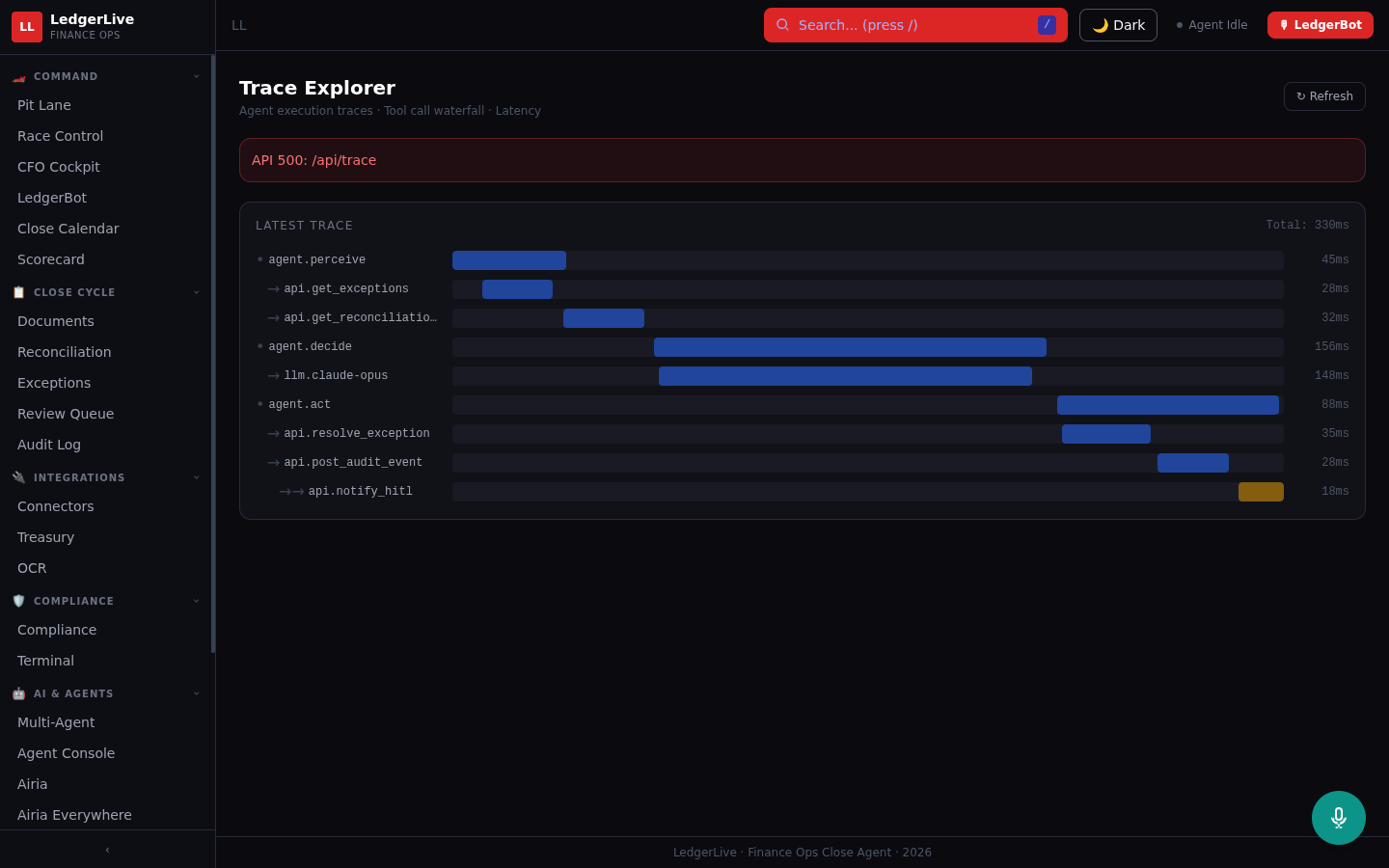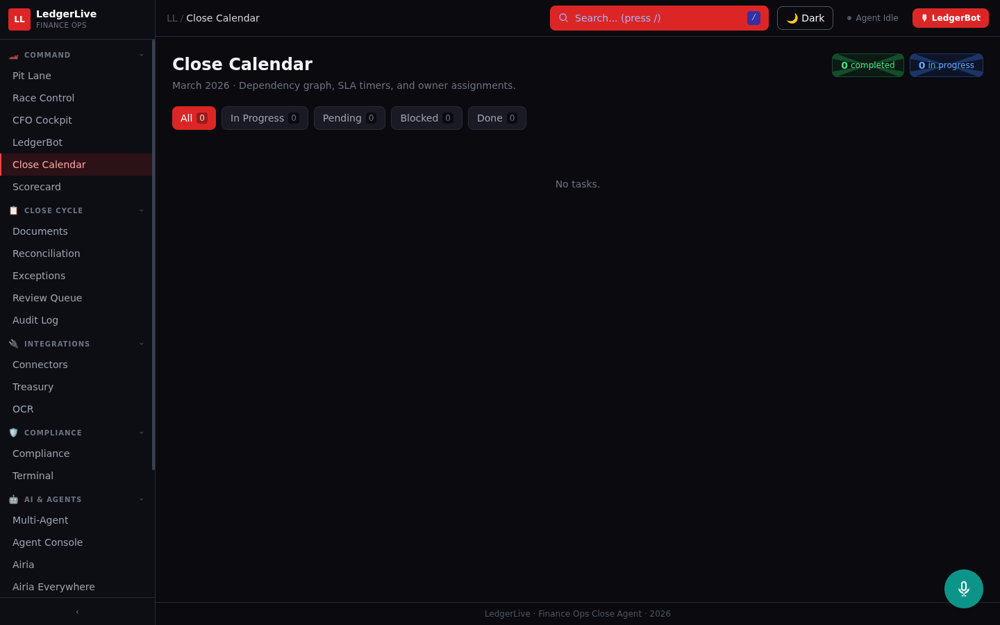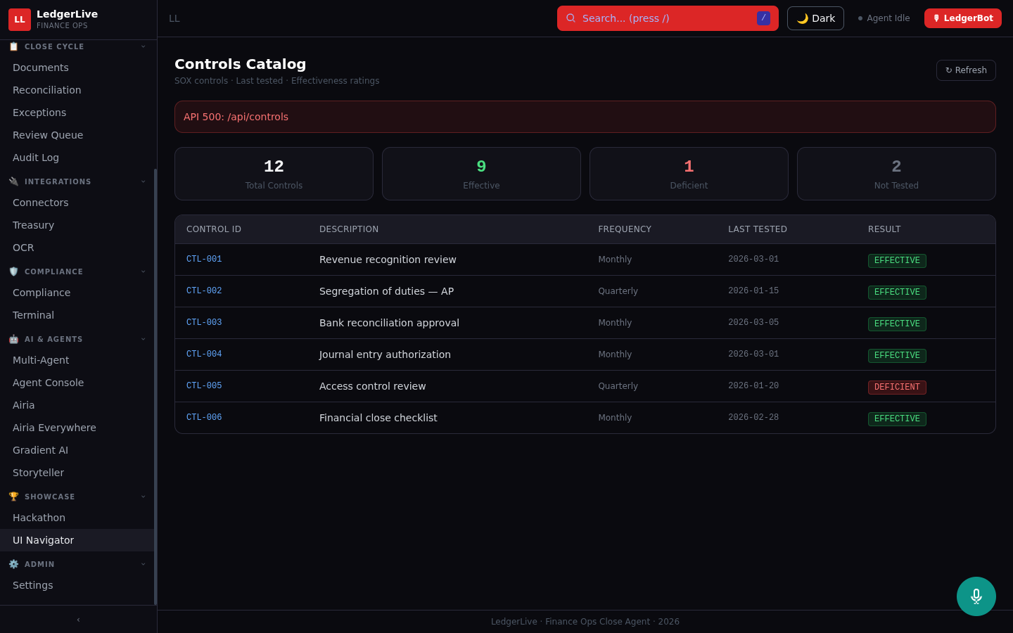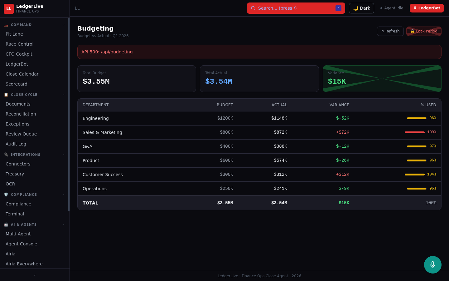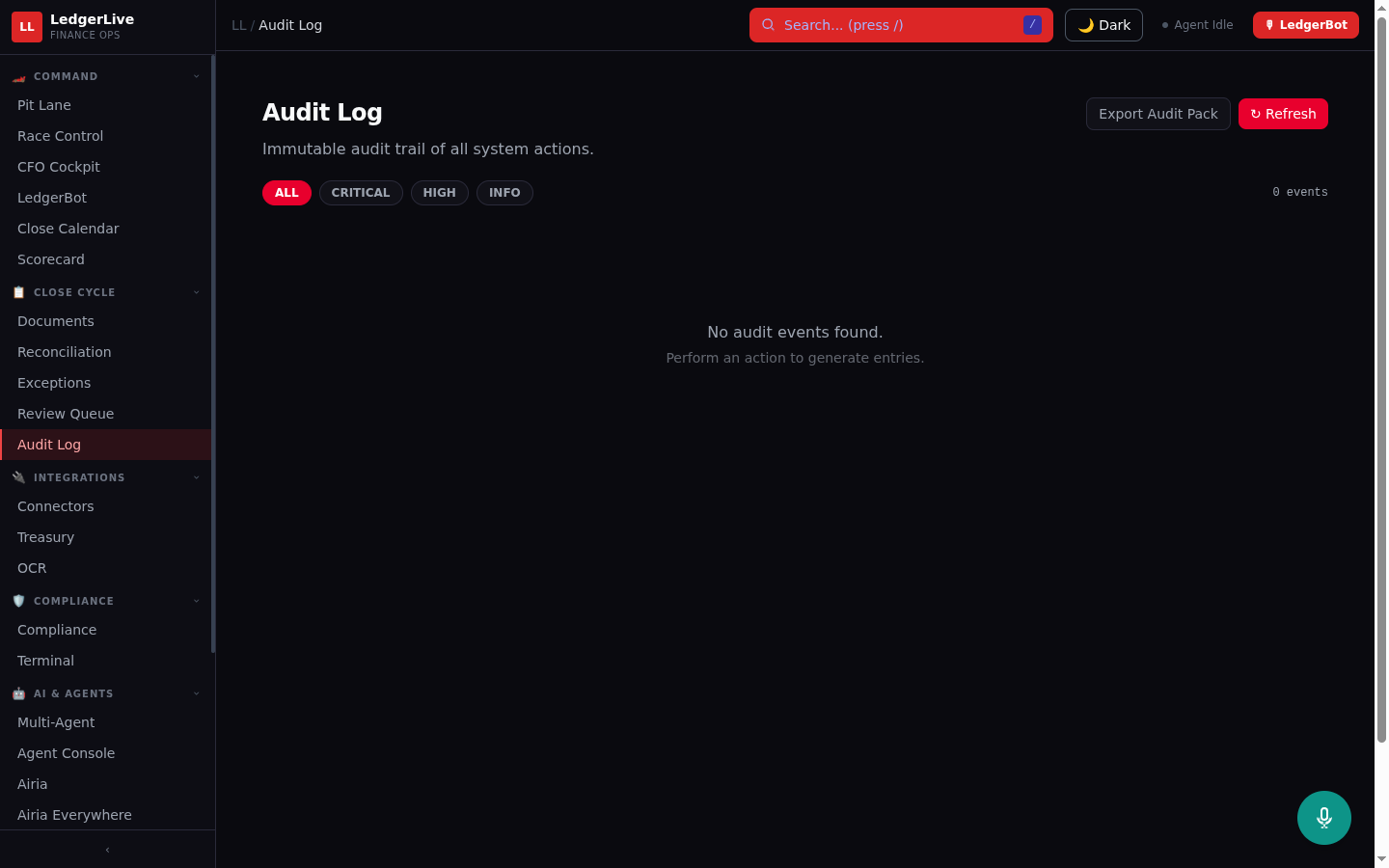 LedgerLive is an Active Agent on Airia that autonomously orchestrates the month-end financial close process across two live systems.