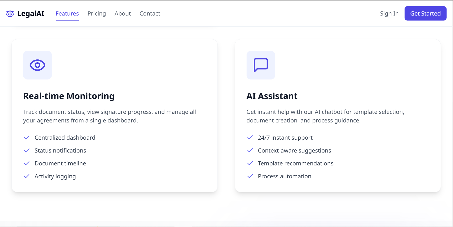 LegalAI provides a comprehensive, end-to-end platform that addresses all these challenges, offering users an intuitive, efficient, and legally sound way to create, manage, and sign agreements. The solution is built to serve both legal practitioners and small businesses, leveraging cutting-edge technology to simplify processes and reduce manual effort.