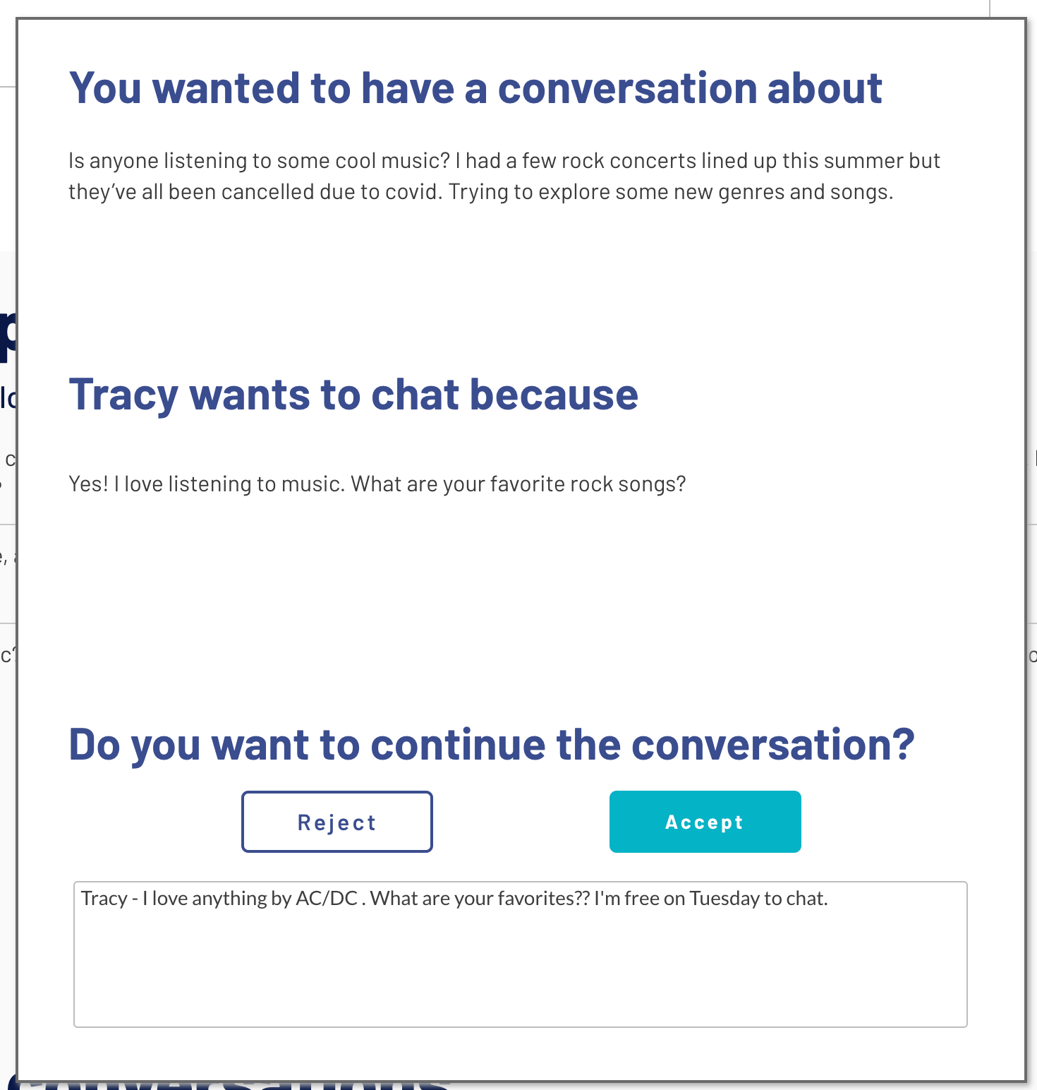 I was excited to see the option to use Bubble.io for the hackathon, because I've always been excited about codeless software platforms. That alongside the struggles of being social with COVID-19, I thought this was a good opportunity to build a conversation matching website with Bubble.