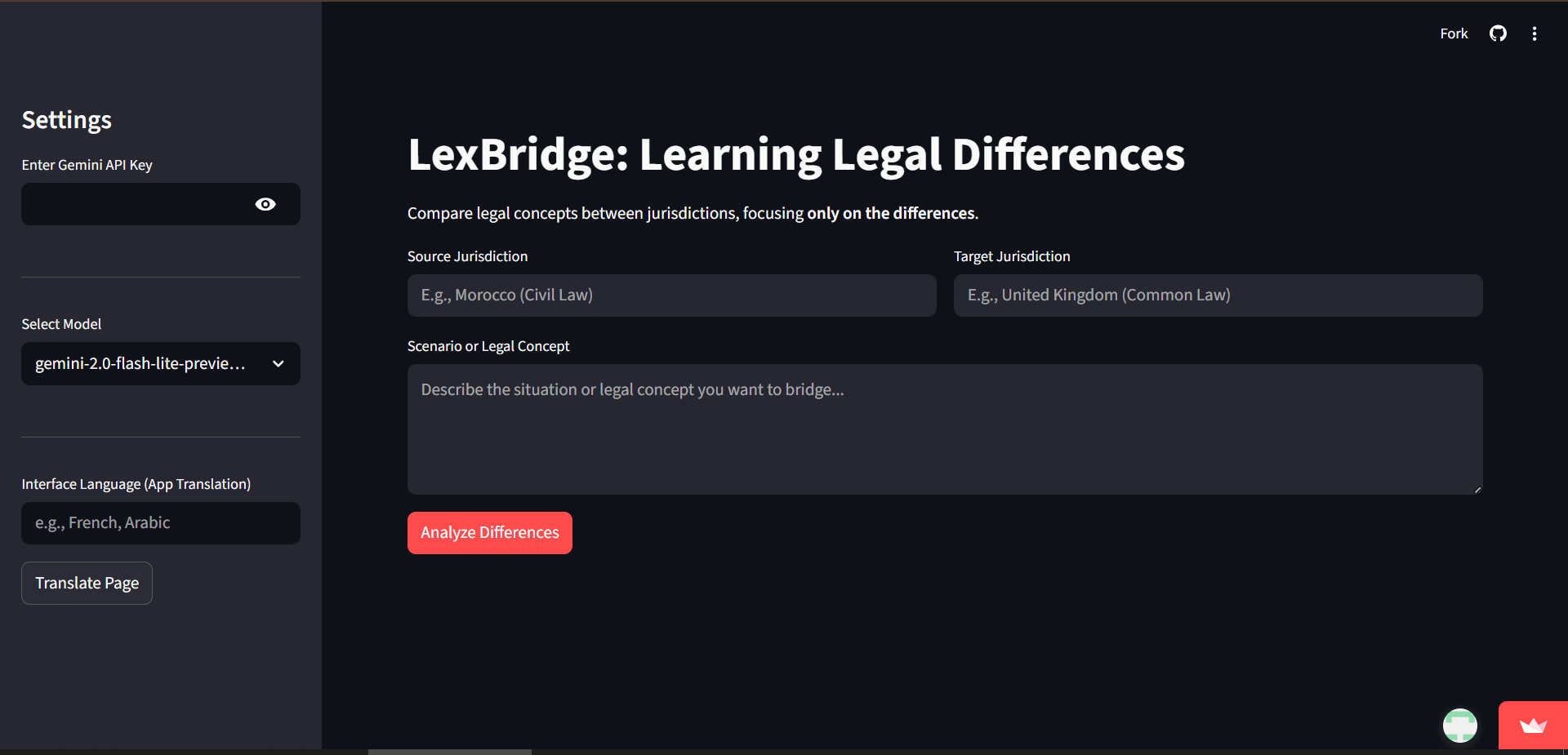 As a law student in Morocco (Civil Law system), I have plans to pursue my Master's degree in the UK (Common Law system). I realized that thousands of international students face a "Legal Culture Shock." We don't need to relearn the law from scratch; we need to understand the differences. Existing tools just translate words, but legal concepts like "Cause" and "Consideration" are not translatable—they are fundamentally different logics. This inspired me to build LexBridge: a tool that teaches the "Delta" (the difference) rather than the basics.