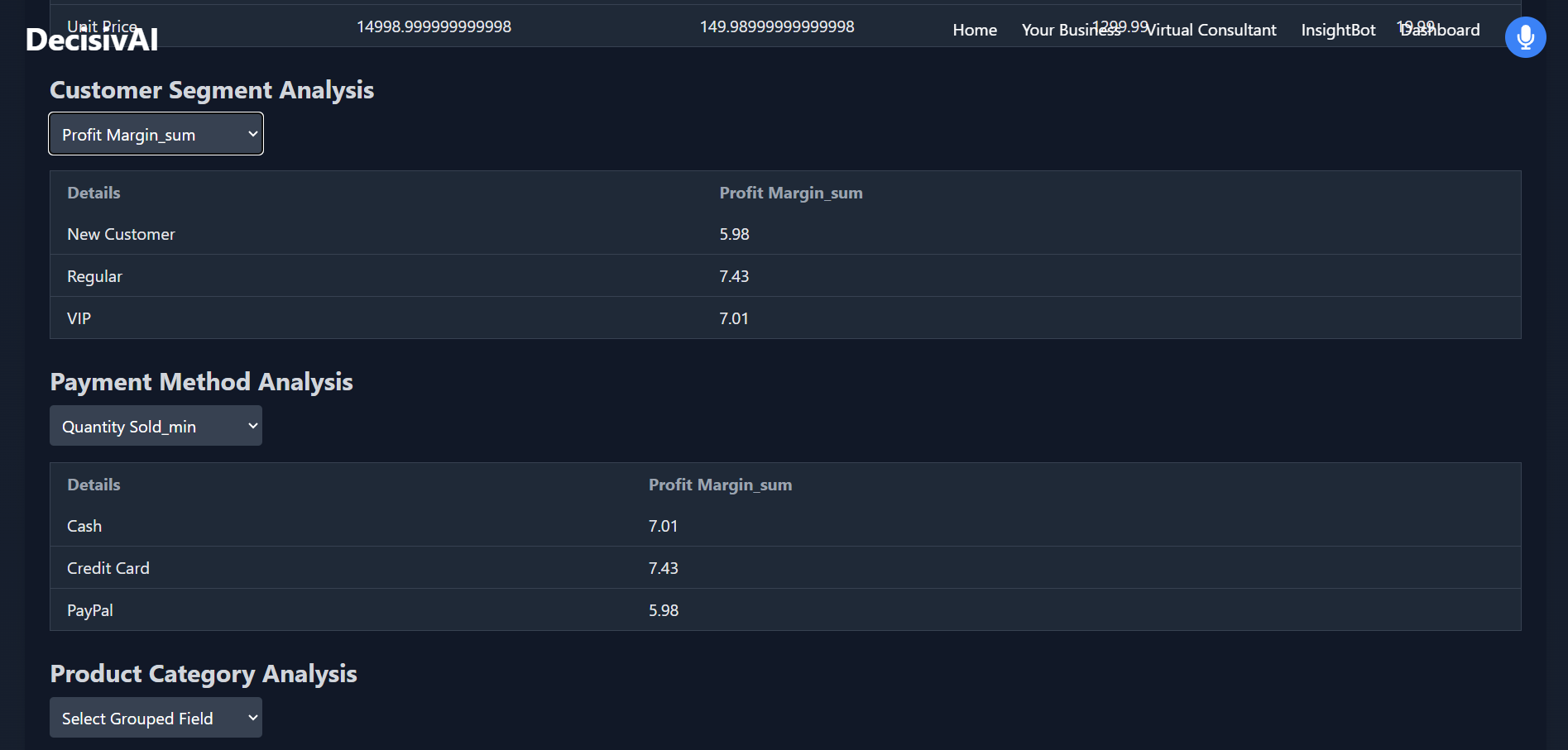 - Virtual Consultant: AI-driven business queries and insights.