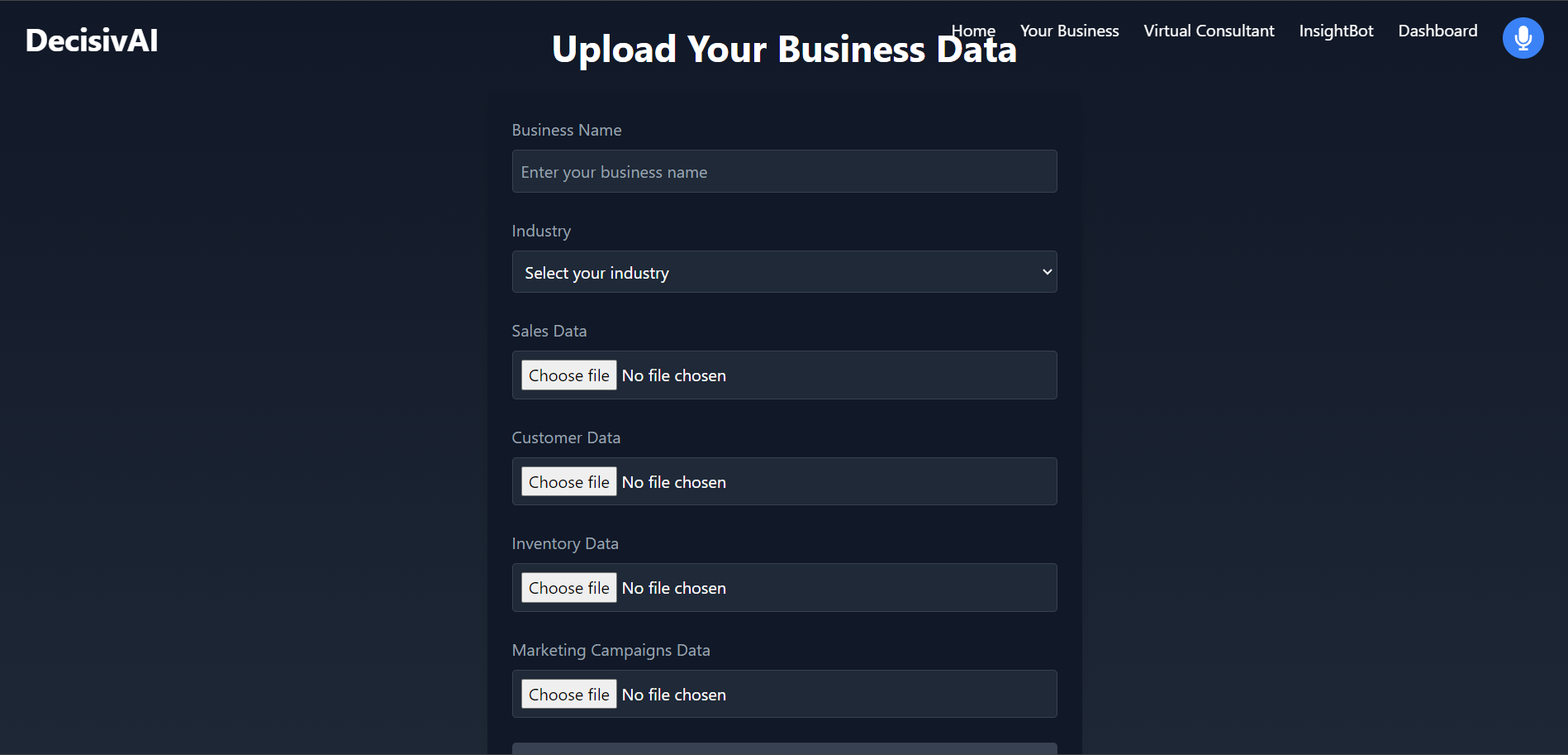 DecisivAI is an AI-powered platform designed to help businesses make informed decisions through data analysis, scenario simulation, and interactive insights. The platform integrates advanced machine learning models, natural language processing, and real-time business data visualization to empower enterprises with actionable insights.