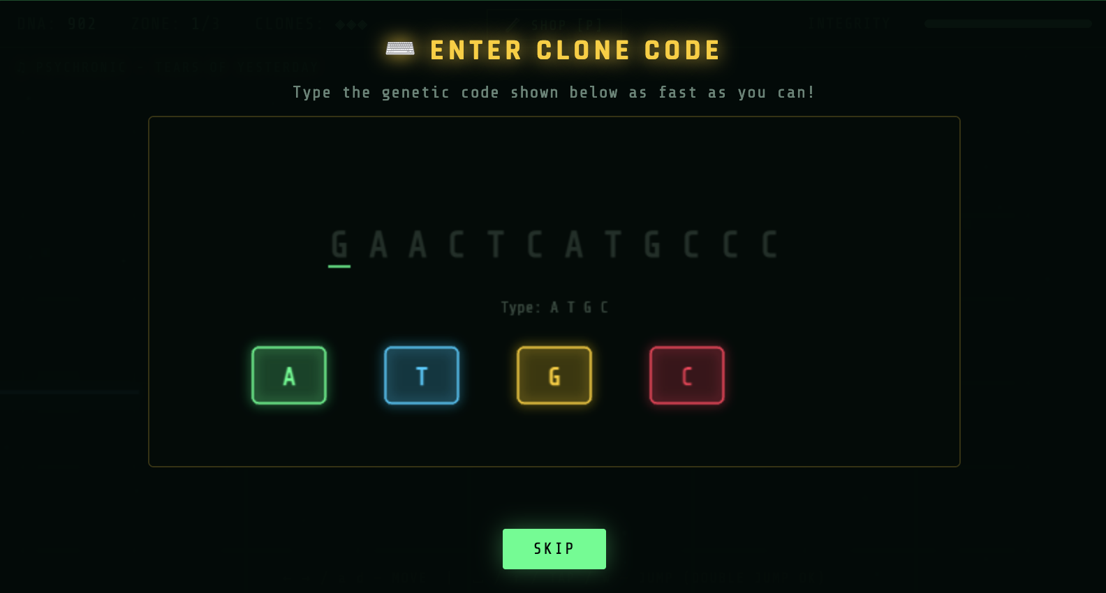 This website starts a game where you act as a character named "CLONE-7", and you must complete three levels with mini-games between each of them.