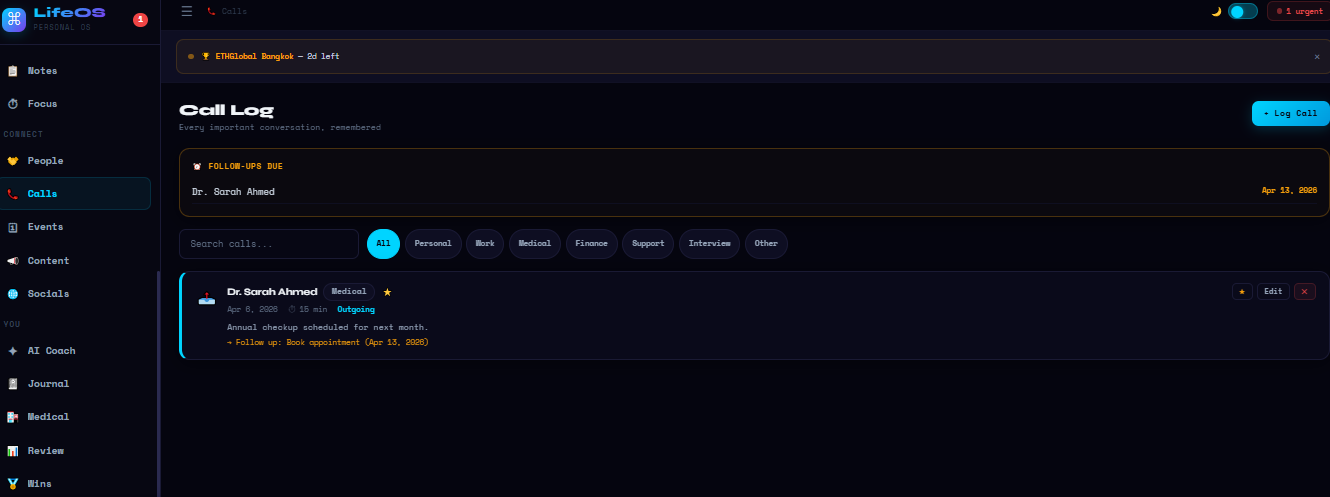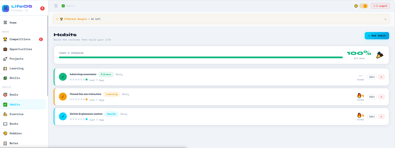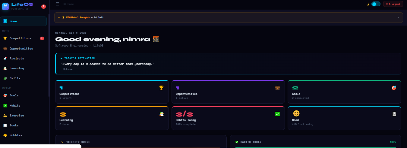 The most useful products are not the most complex ones. LifeOS works because it removes friction one place, one system, zero barriers. That simplicity was the hardest design decision to hold. It was worth every moment.