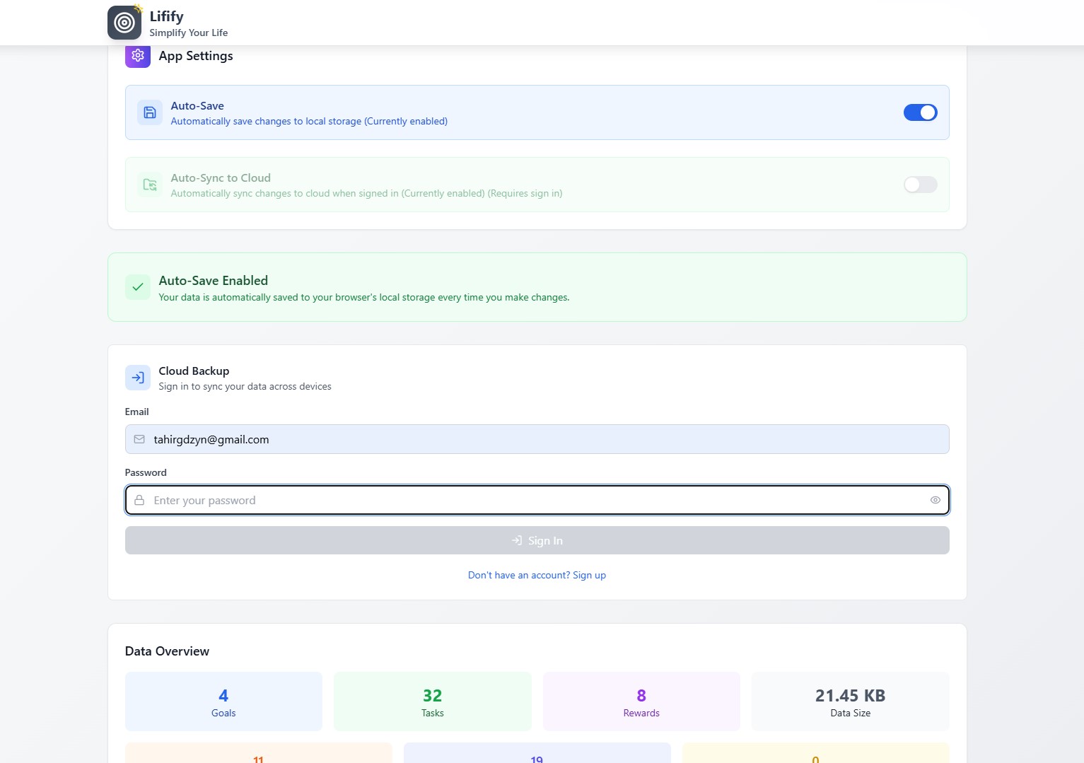 Security: Optional cloud storage – LocalStorage plus one-click export/import means you can map your life without thought of who's looking - its your life afterall.