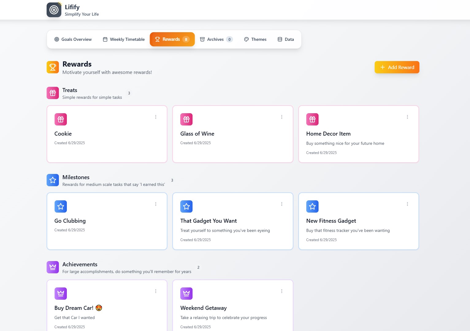 Rewards momentum: Borrowed from my game dev experience; A built-in reward engine lets you setup reward pools which lets you receive lootbox style rewards for completing tasks or goals.