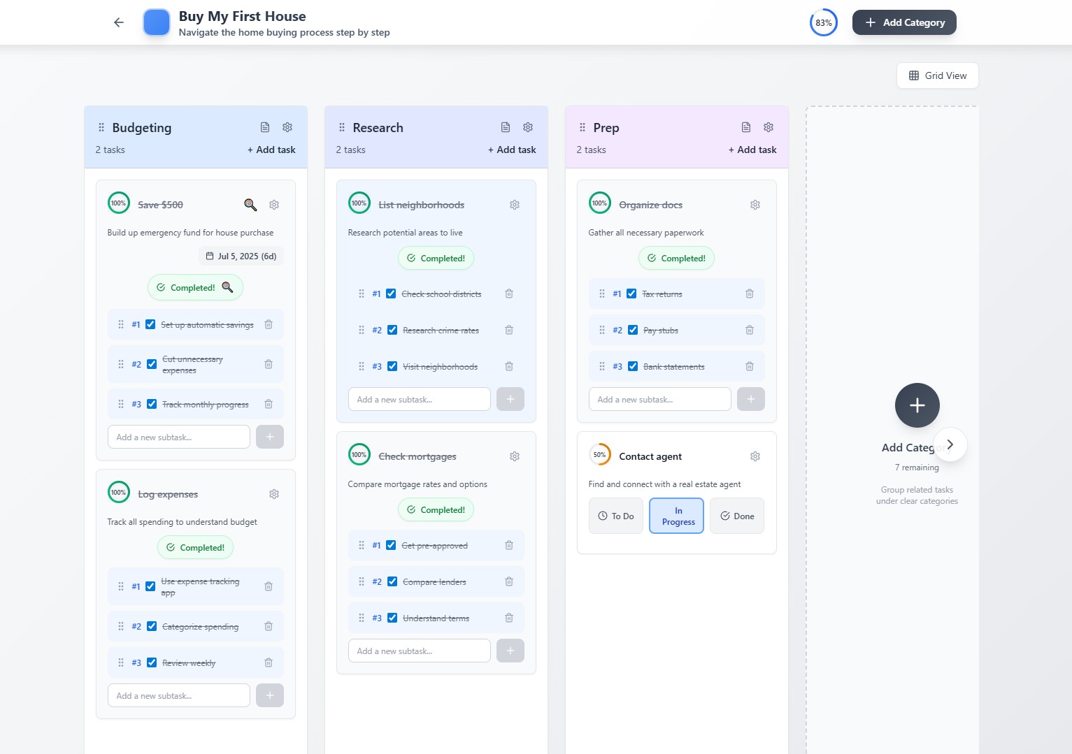 Maps your mind: Borrowed from tech, Drag-and-drop Kanban boards let's you capture raw ideas, then convert them into goals, tasks, and subtasks.