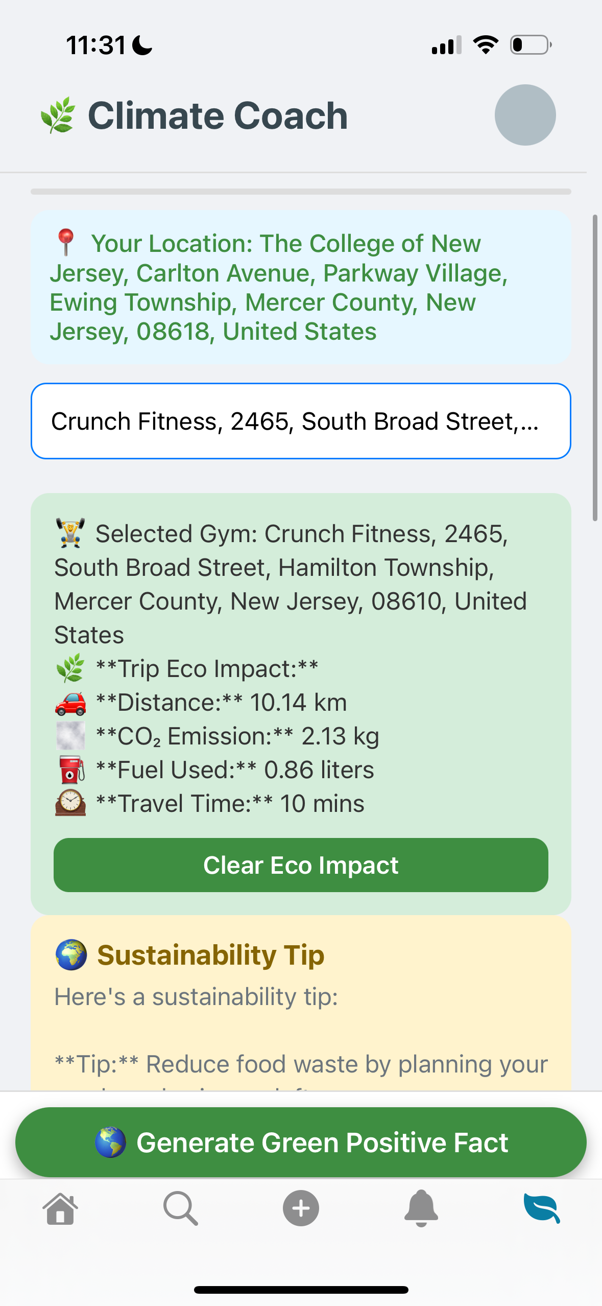 We're proud of how we were able to bridge fitness with sustainability. We also used Auth0 for user identities, in addition to login and registration.
