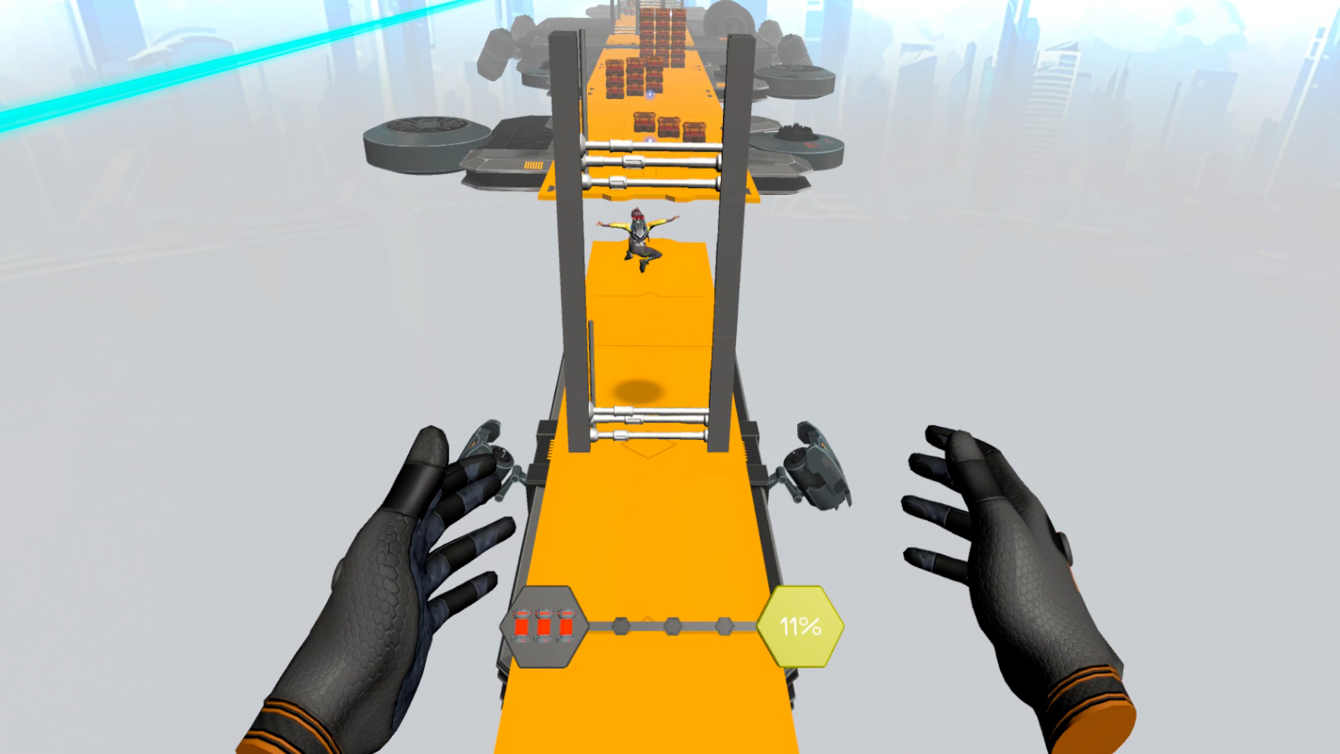 I love competitive games with that “anything can happen” vibe. In multiplayer, I’m aiming for Mario Kart-style dynamics, where you can go from last to first with one great play. And in single player, I can easily imagine groups of friends passing the headset around, each trying to beat their friend’s best % progress and claiming bragging rights with a clean run.