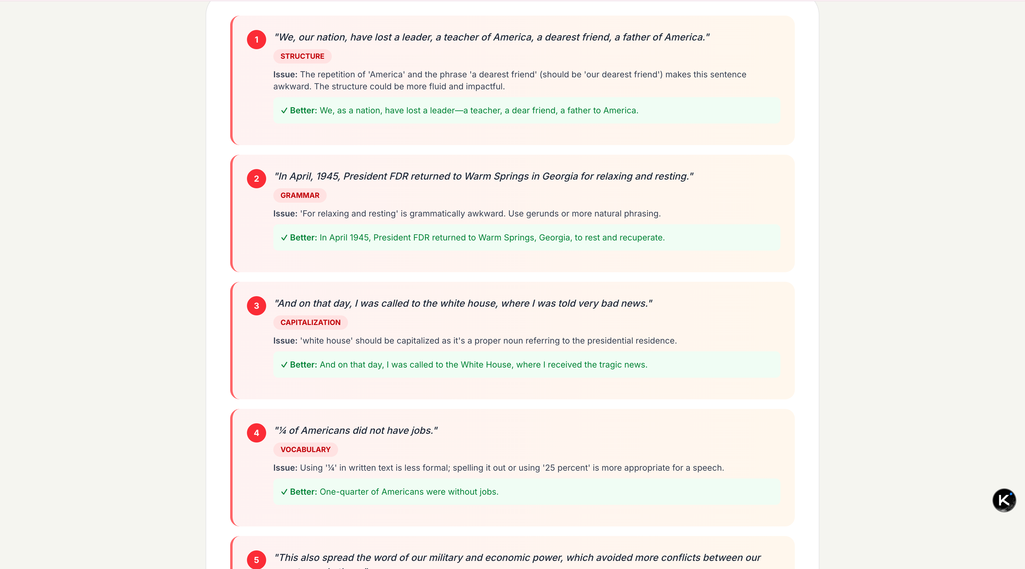 We learned that great AI writing tools need more than strong model output. They also need thoughtful UX, clear explanations, and a tone that builds user confidence rather than just pointing out mistakes.