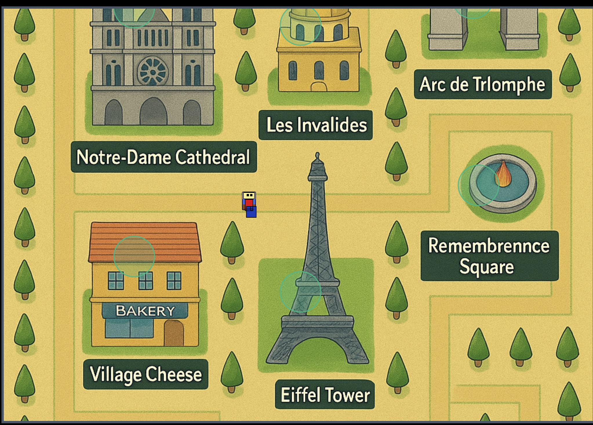 - Navigation Map: A lightweight map interface where users can select different scenarios and interact with AI-powered characters.