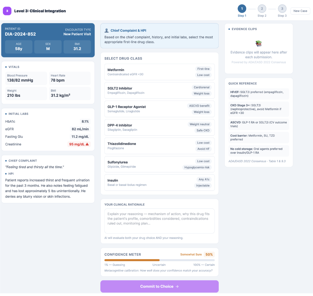 What's next for Teaching Clinical Reasoning in T2D Medication selection