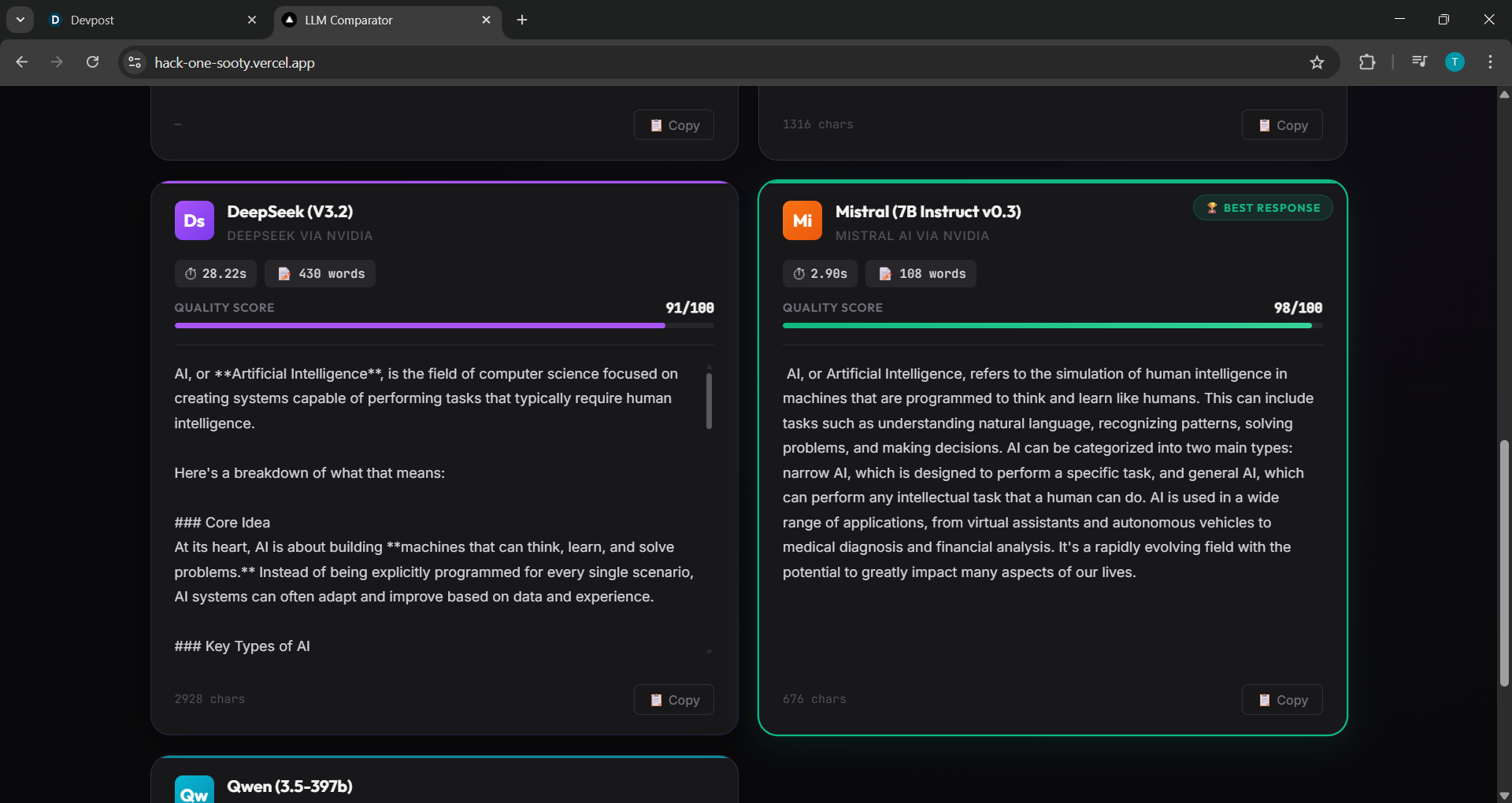 That curiosity led me to build LLM Comparator — a platform that aggregates, analyzes, and ranks responses from multiple AI models.