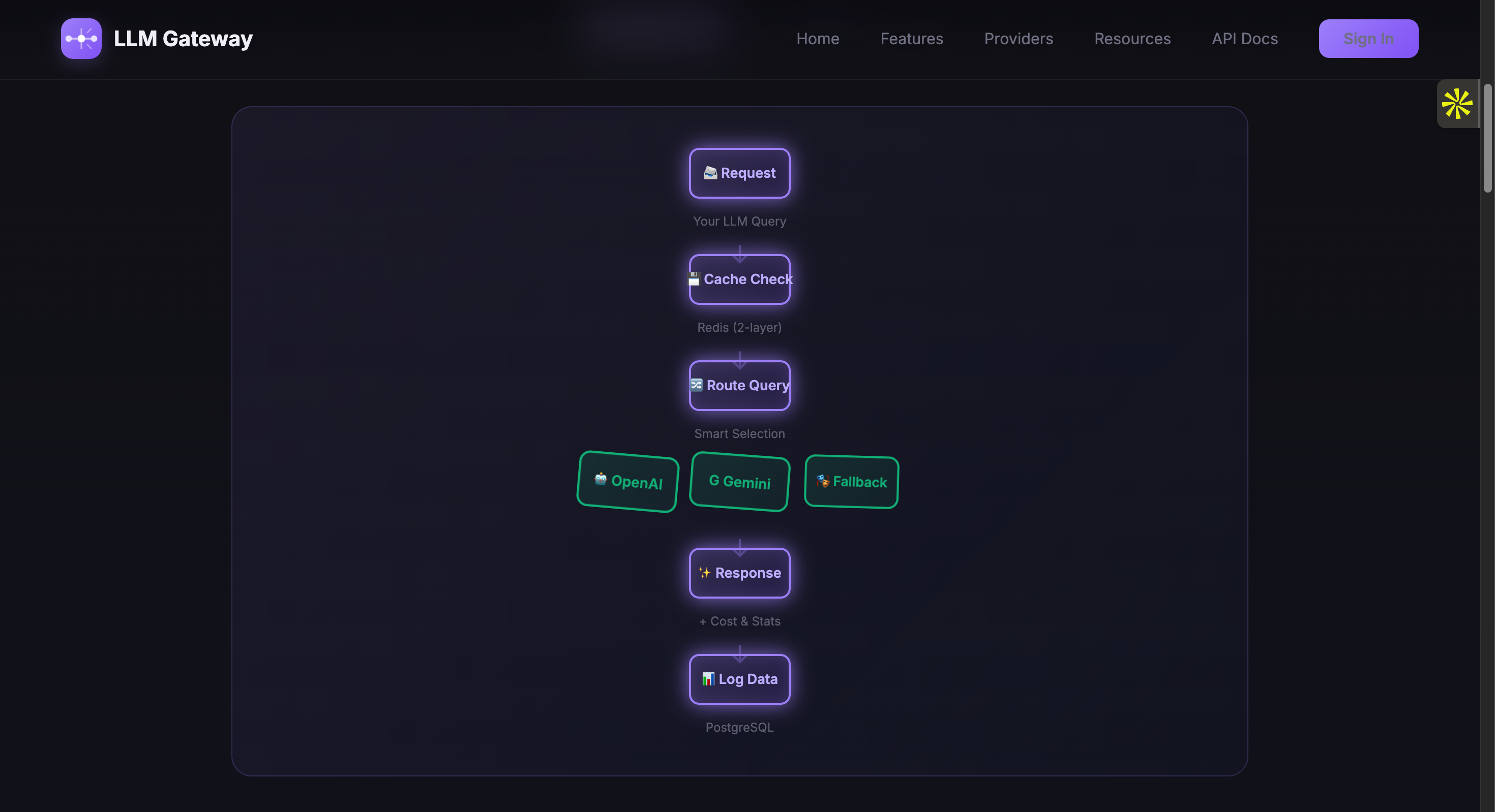 Why force developers to choose? What if a smart gateway could route requests intelligentlyβusing Gemini for writing tasks (70% cheaper) and OpenAI for reasoning tasks (better quality)βwhile automatically falling back if a provider fails?