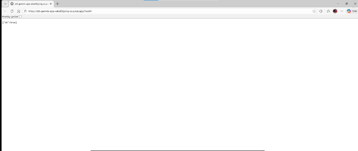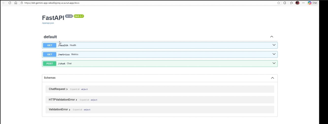 Live Cloud Run service exposing Gemini-powered endpoints.