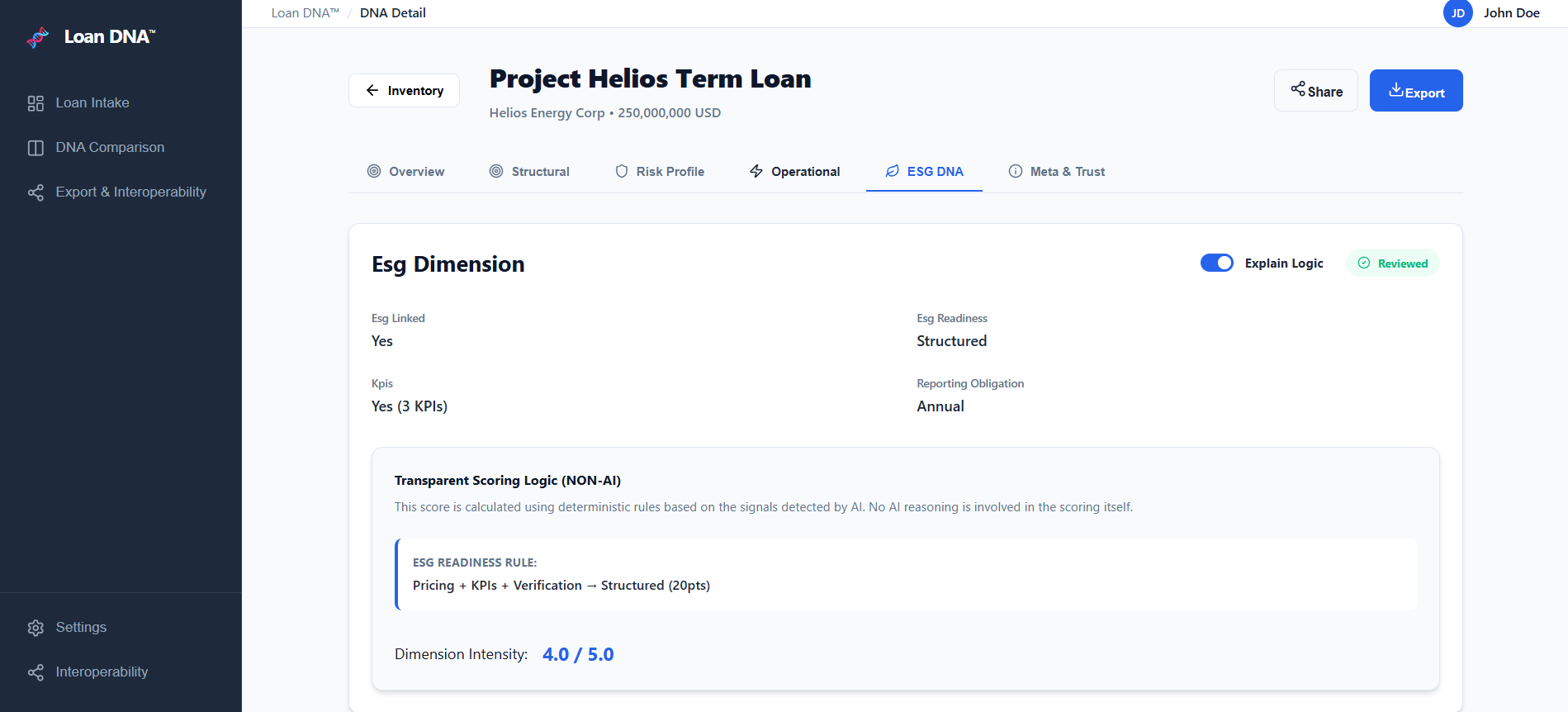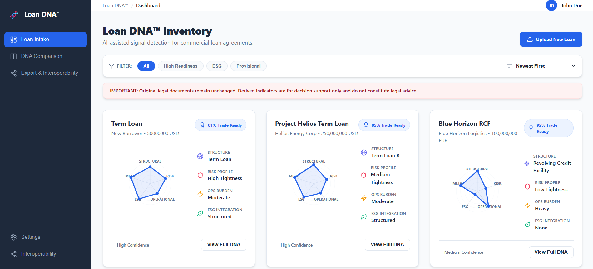 These DNA profiles allow loans to be quickly understood, compared, and assessed across portfolios, while preserving the authority of the original legal documentation.