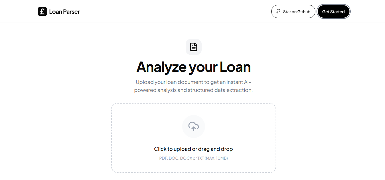 I got the inspiration for this project from a contract analyzer built by someone, and I thought, Why don't I do the same for loans? Then, I started a loan AI analyzer tool and called it Loan parser.