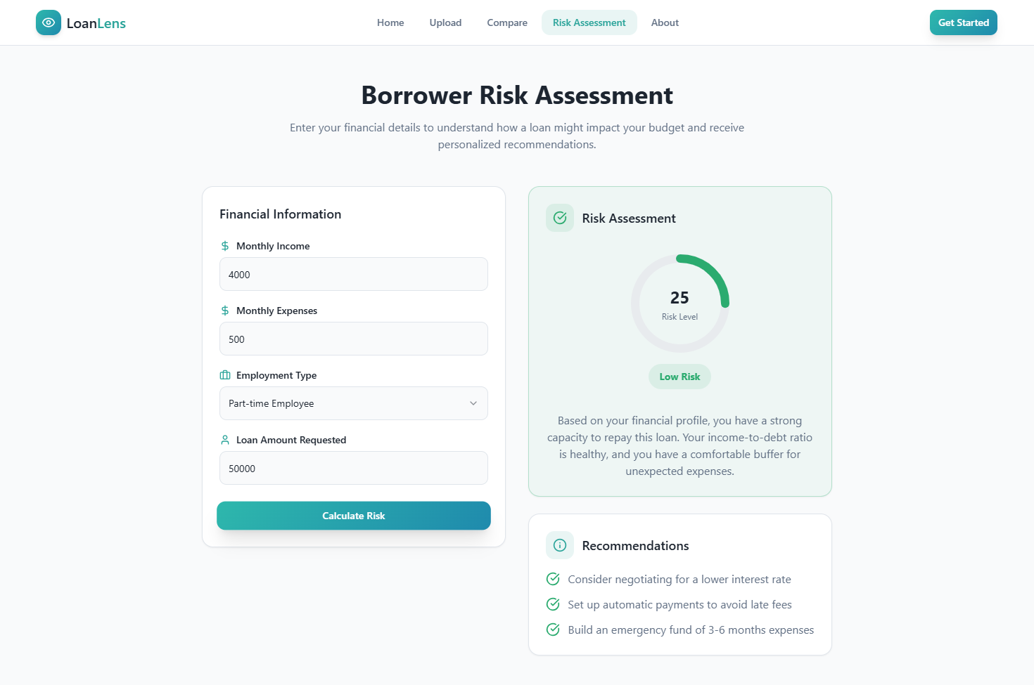 Also, it can be a platform to advertise loans. There is a recommended loans tab for that. In short: an informed borrower is a more profitable borrower. LoanLens aligns borrower protection with lender sustainability.