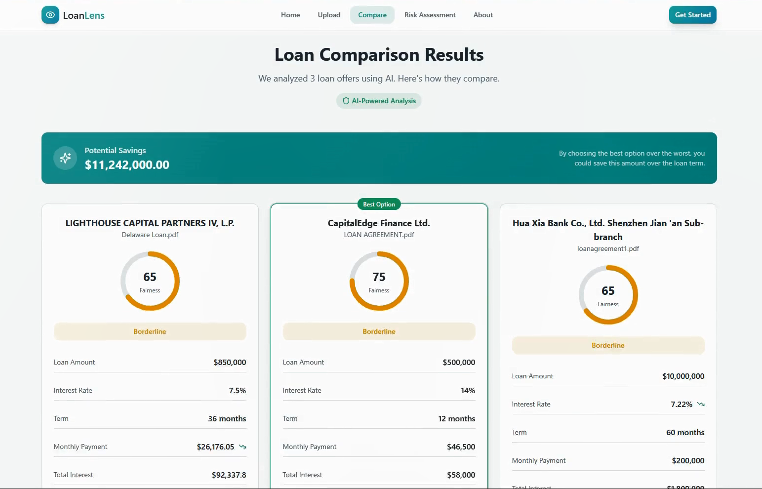 - The Comparison Engine: Allows users to compare up to 5 loans side-by-side to identify the mathematically "Safer Choice."