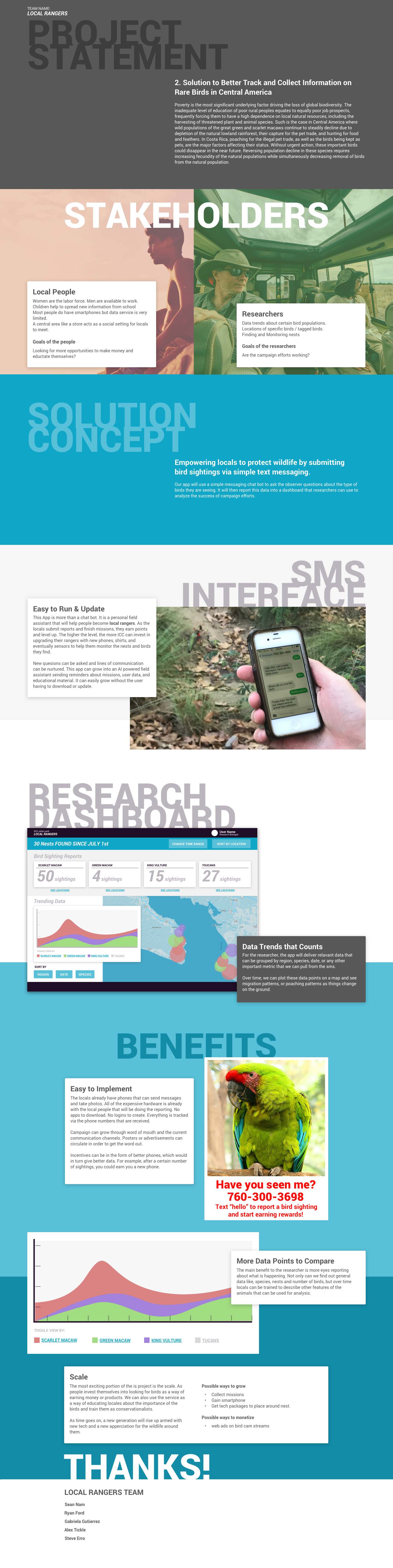 As users continue to capture and send field reports they advance through the local ranger program earning rewards, additional resources, and vital experience. Ultimately leading towards a full time job as a local ranger.