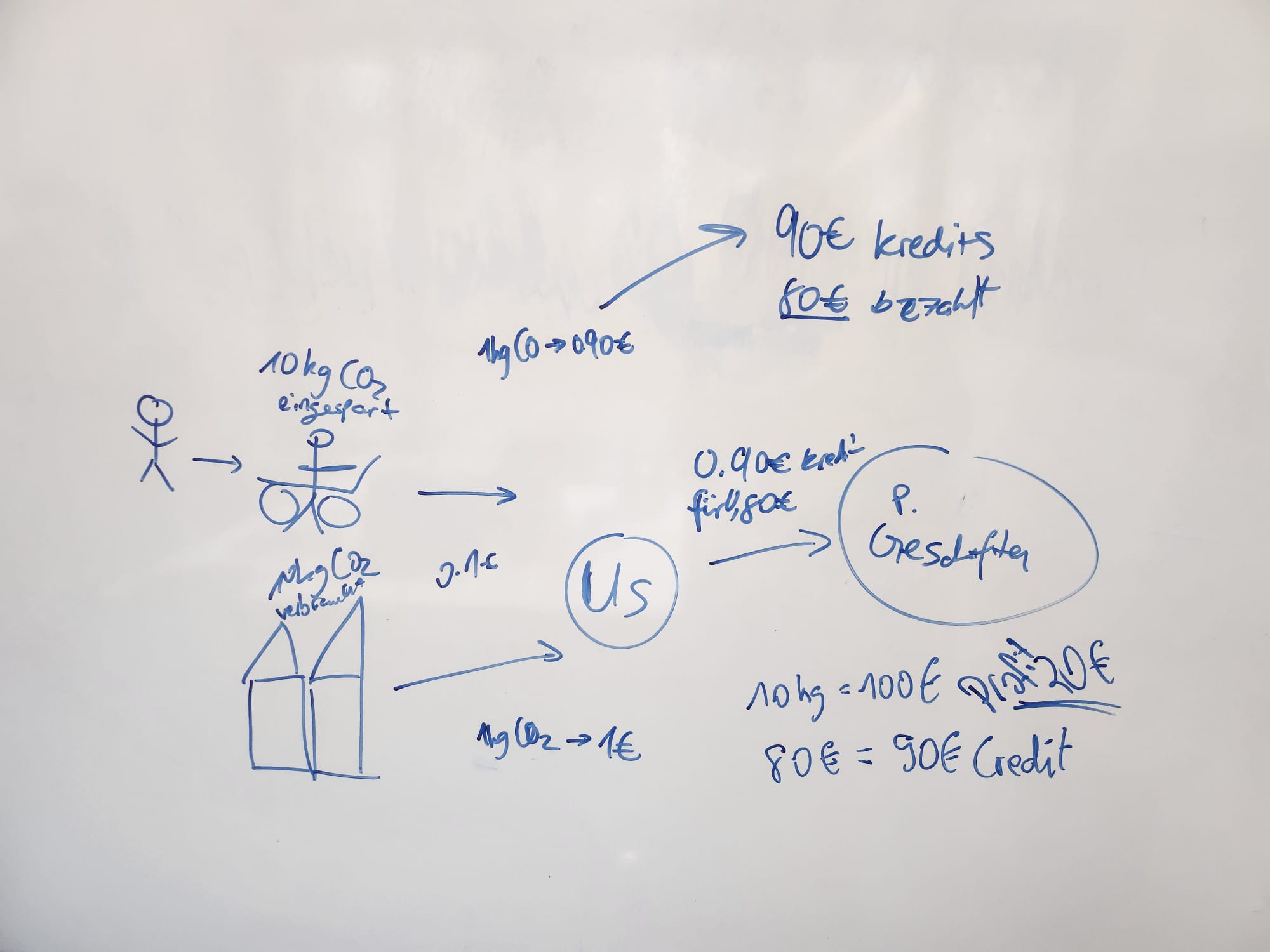 By democratising carbon emission trading and paying out rewards using a local currency, we provide a system to the inhabitants with which they are empowered to solve these issues sustainably. We create a cashflow which keeps the value within communities by allowing for digital payments without any fees attached and creating a monetary vehicle targeted towards small local businesses. These businesses may exchange one of our points for one Euro, though there is an 5% conversion fee attached so that the local cashflow may rarely be interrupted. The buying-power is received through trading your avoided carbon emissions via a climate-fund to organisations with net-positive emissions.
