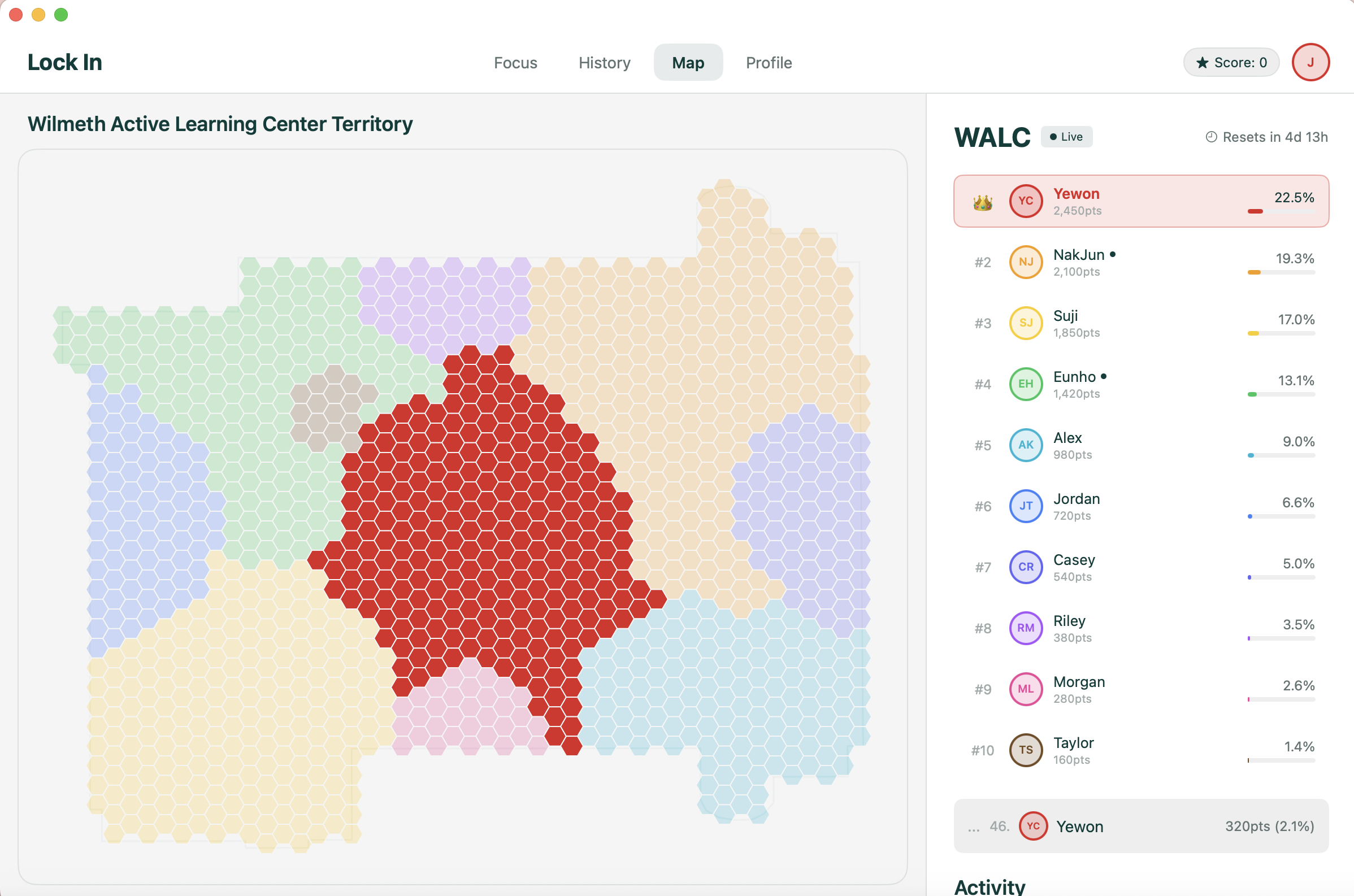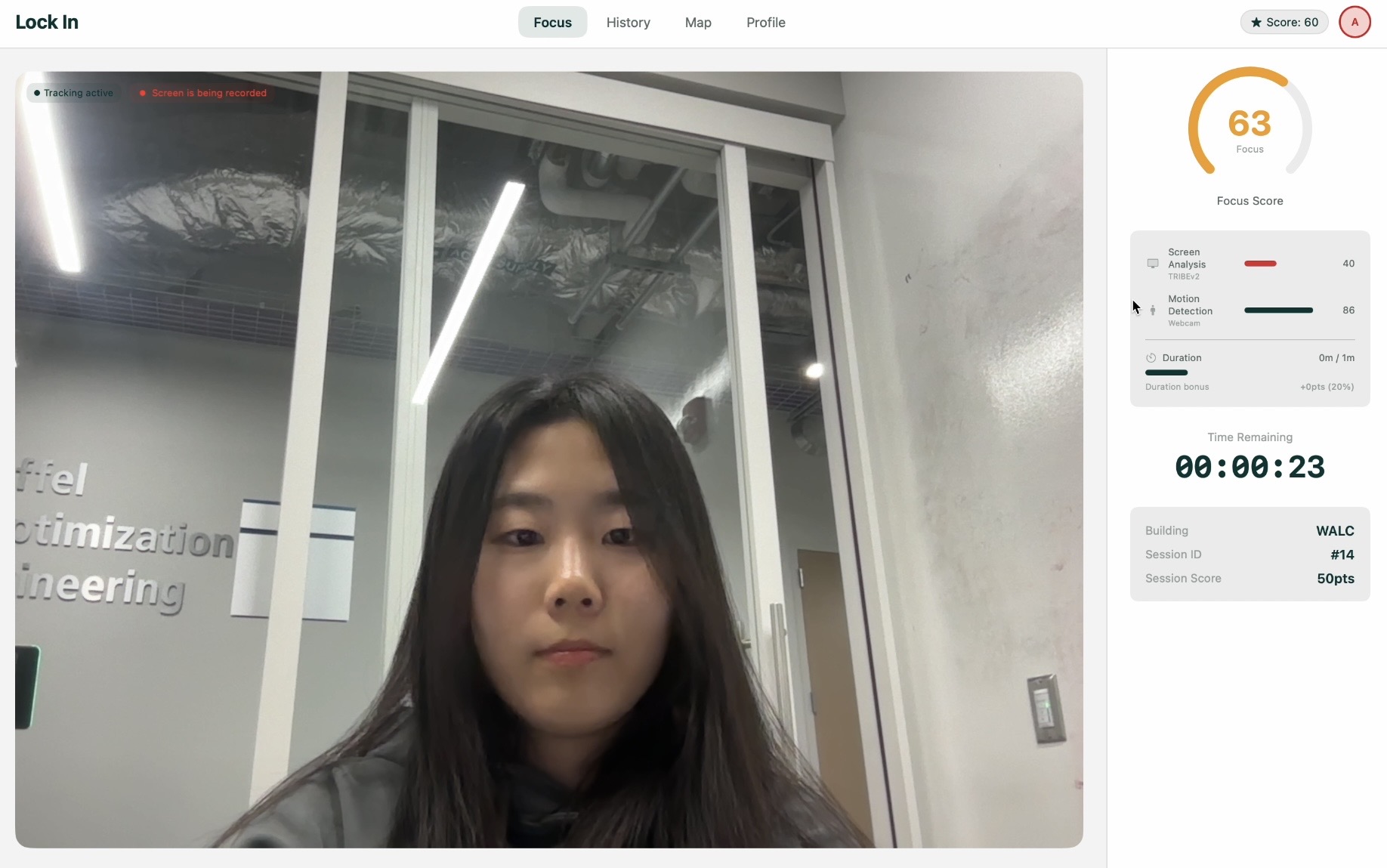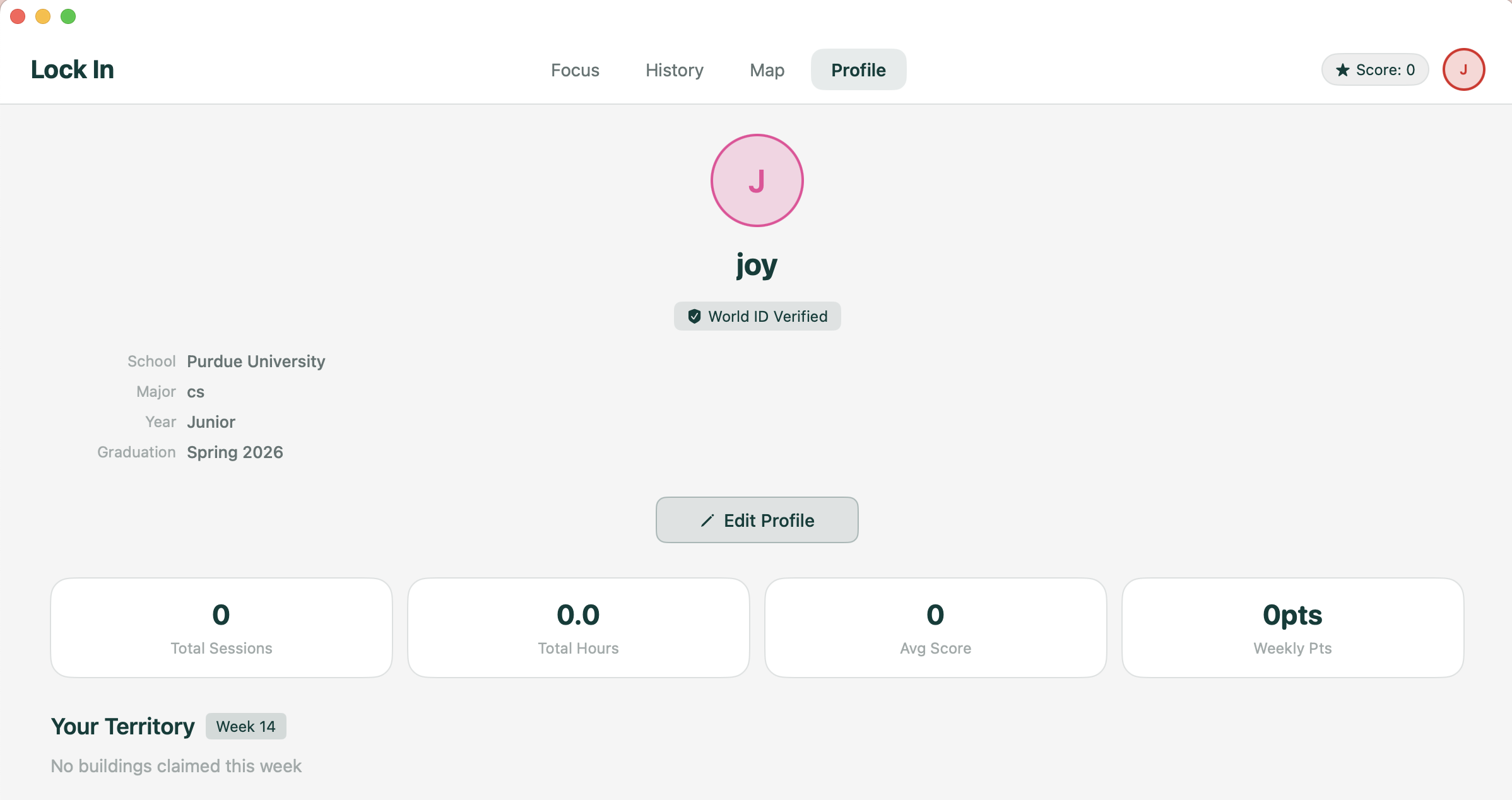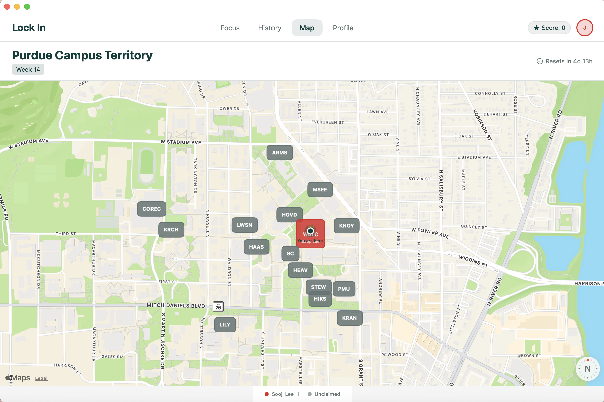 Lock In is a macOS-native study app that combines AI-powered focus verification with campus building competition.