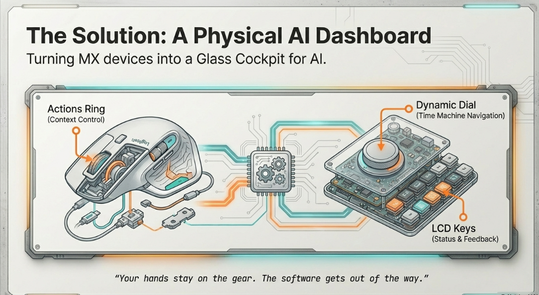 LogiFlow turns your Logitech MX Master 4 and MX Creative Console into a physical AI dashboard for developers a "glass cockpit" that eliminates the context-switching tax of AI-assisted work.