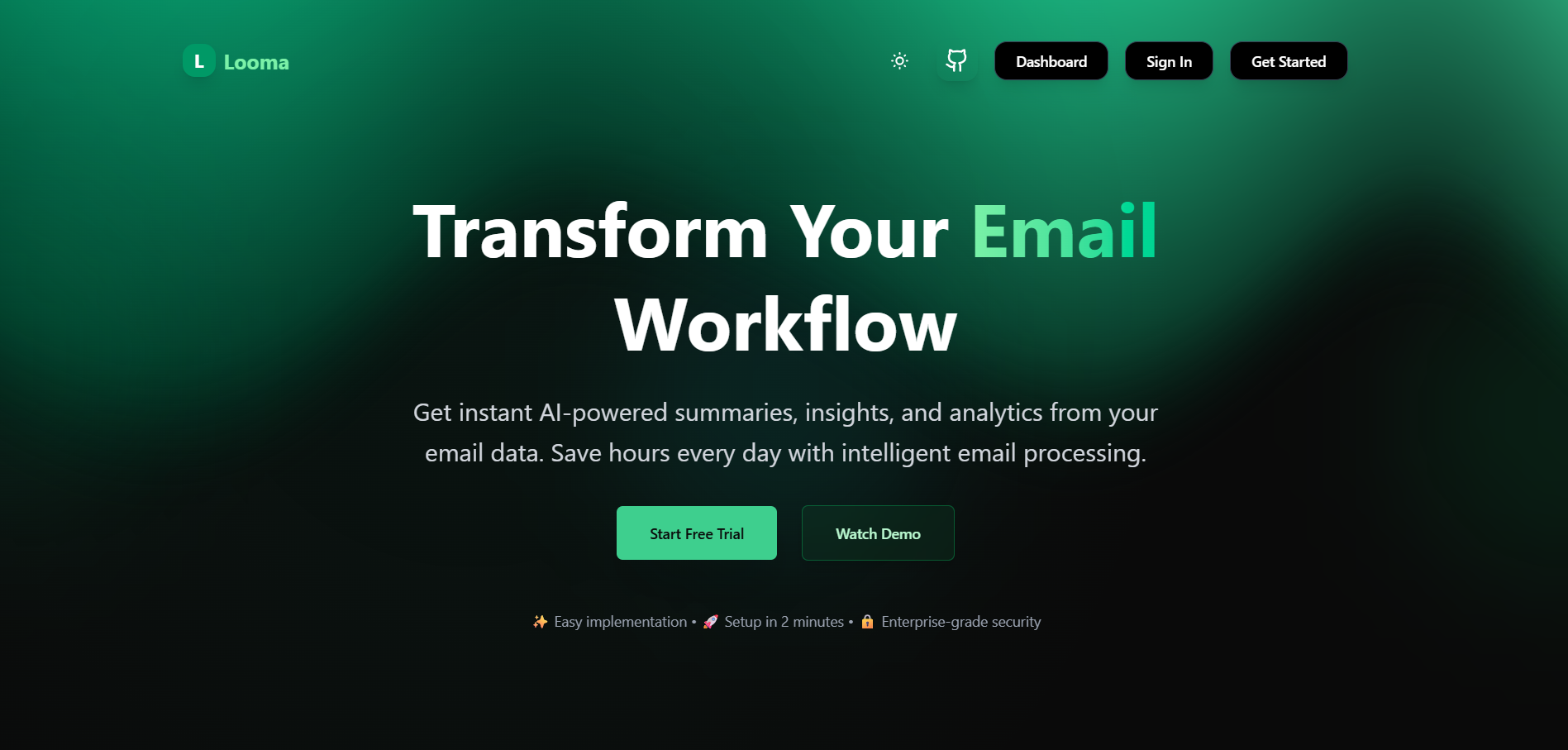 Looma is a full-stack email management dashboard that transforms how users interact with their Gmail inbox: