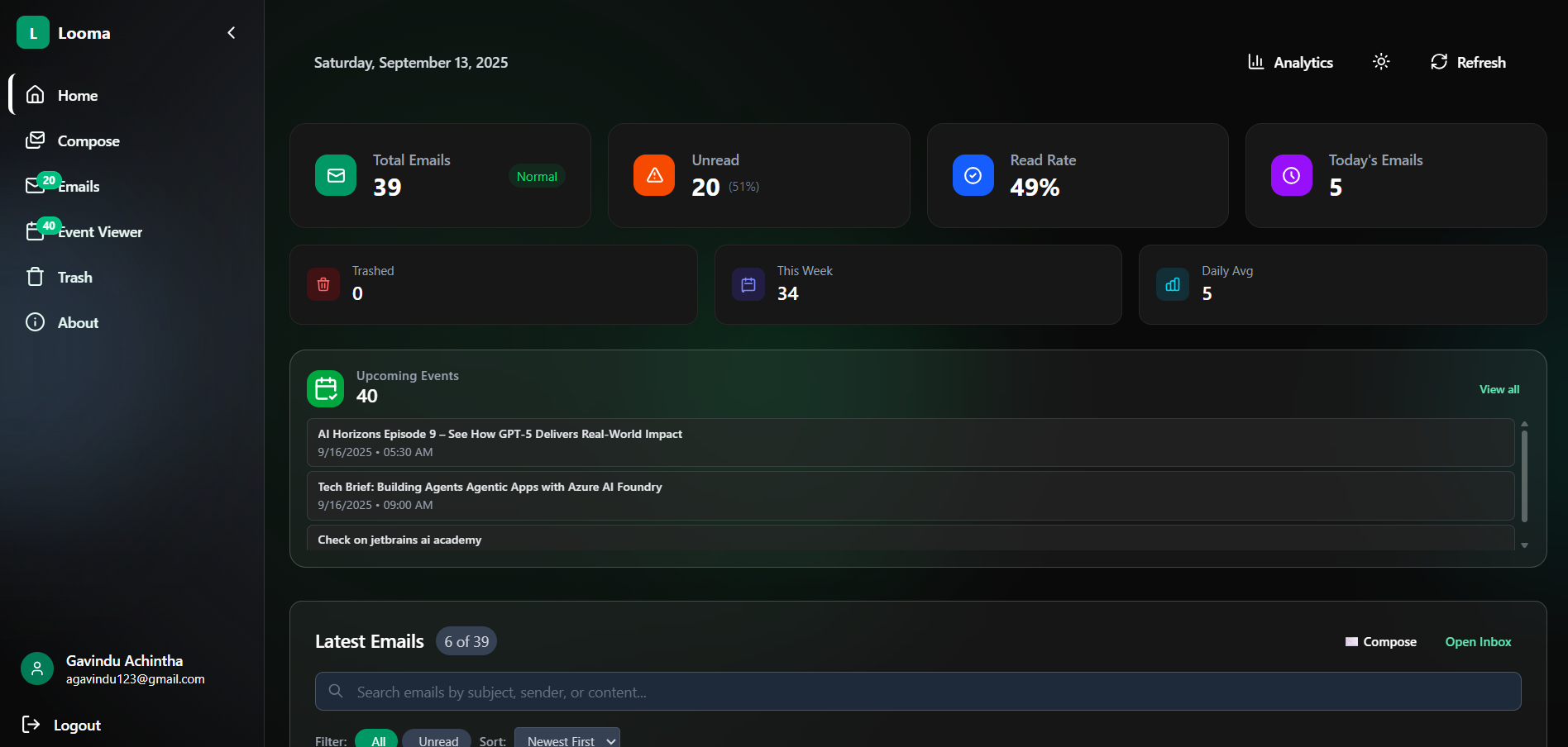 Looma: AI-Powered Email Dashboard with Event Planning