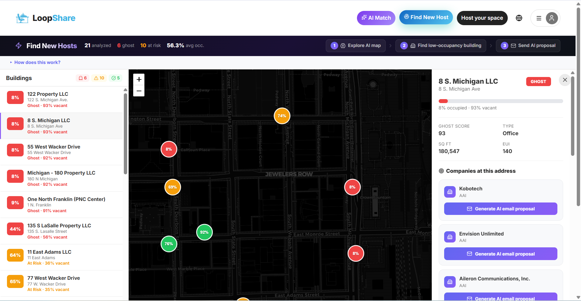 By using Chicago’s public data, we identify "ghost buildings" before they even think about listing. Our platform reaches out to these owners automatically to help them rent out their unused desks to small businesses that need a place to work. This brings people back to the area and helps the whole local economy thrive again.
