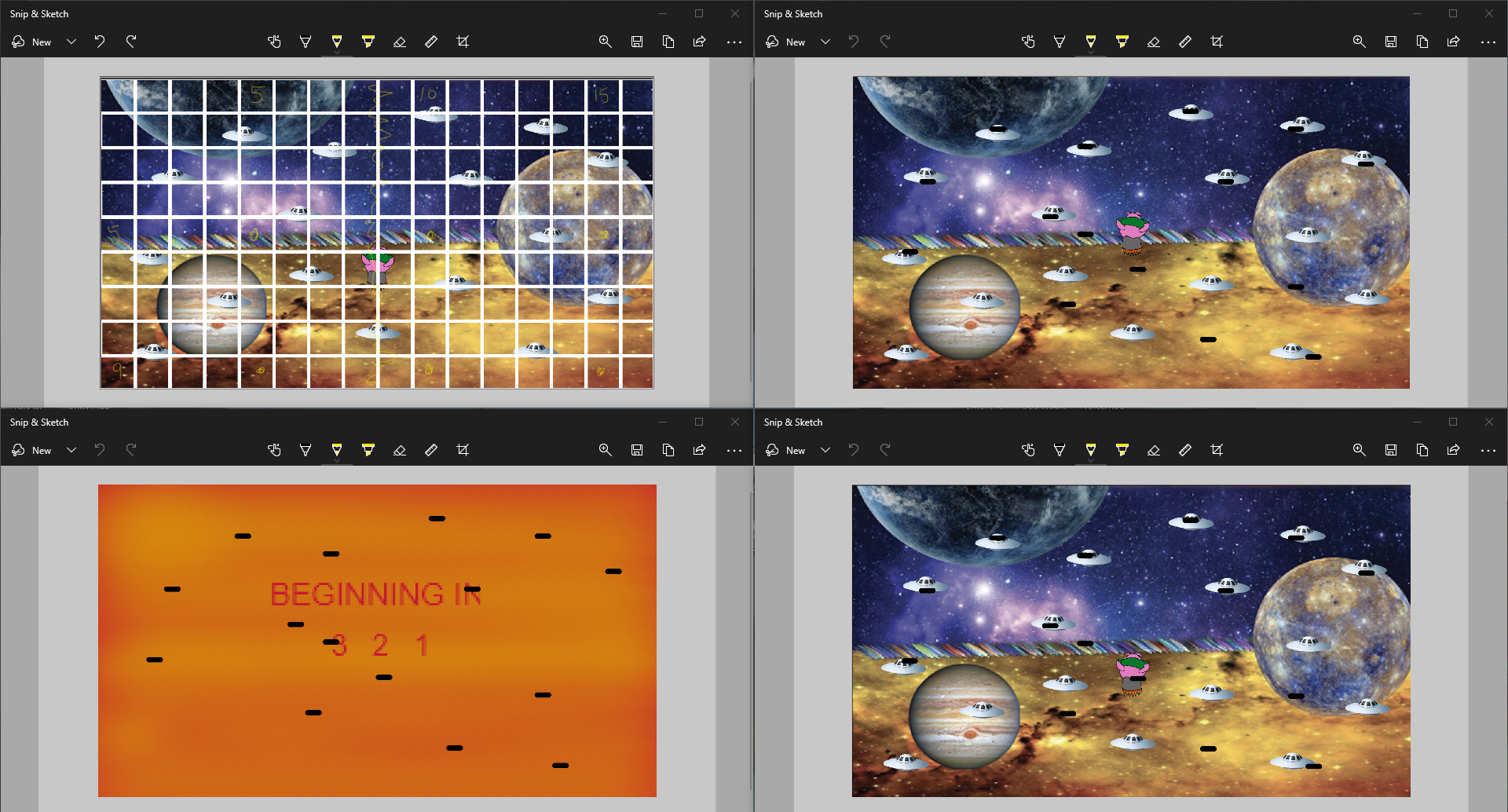 We learned and practiced the basics to Python game development and graphical design.