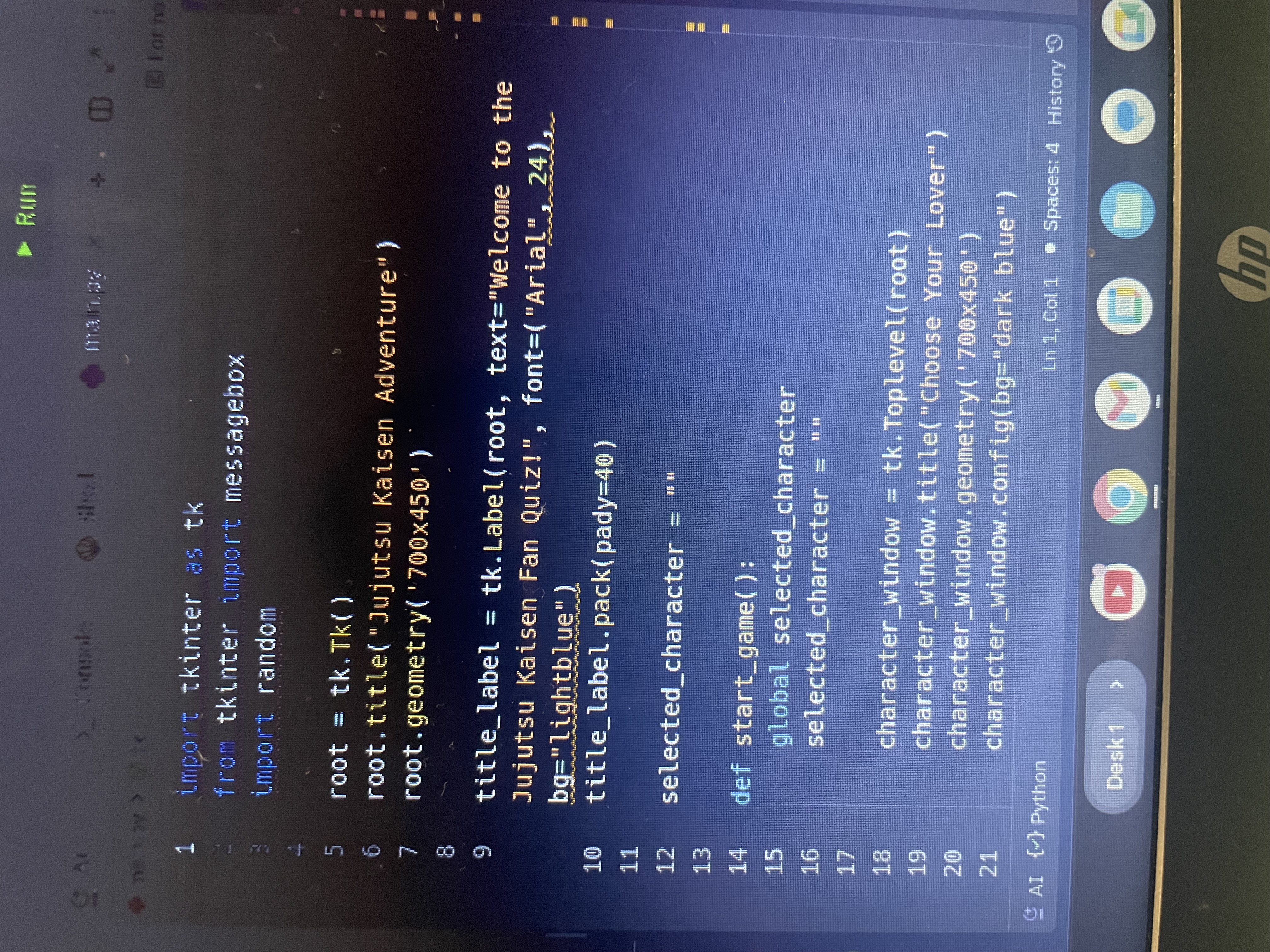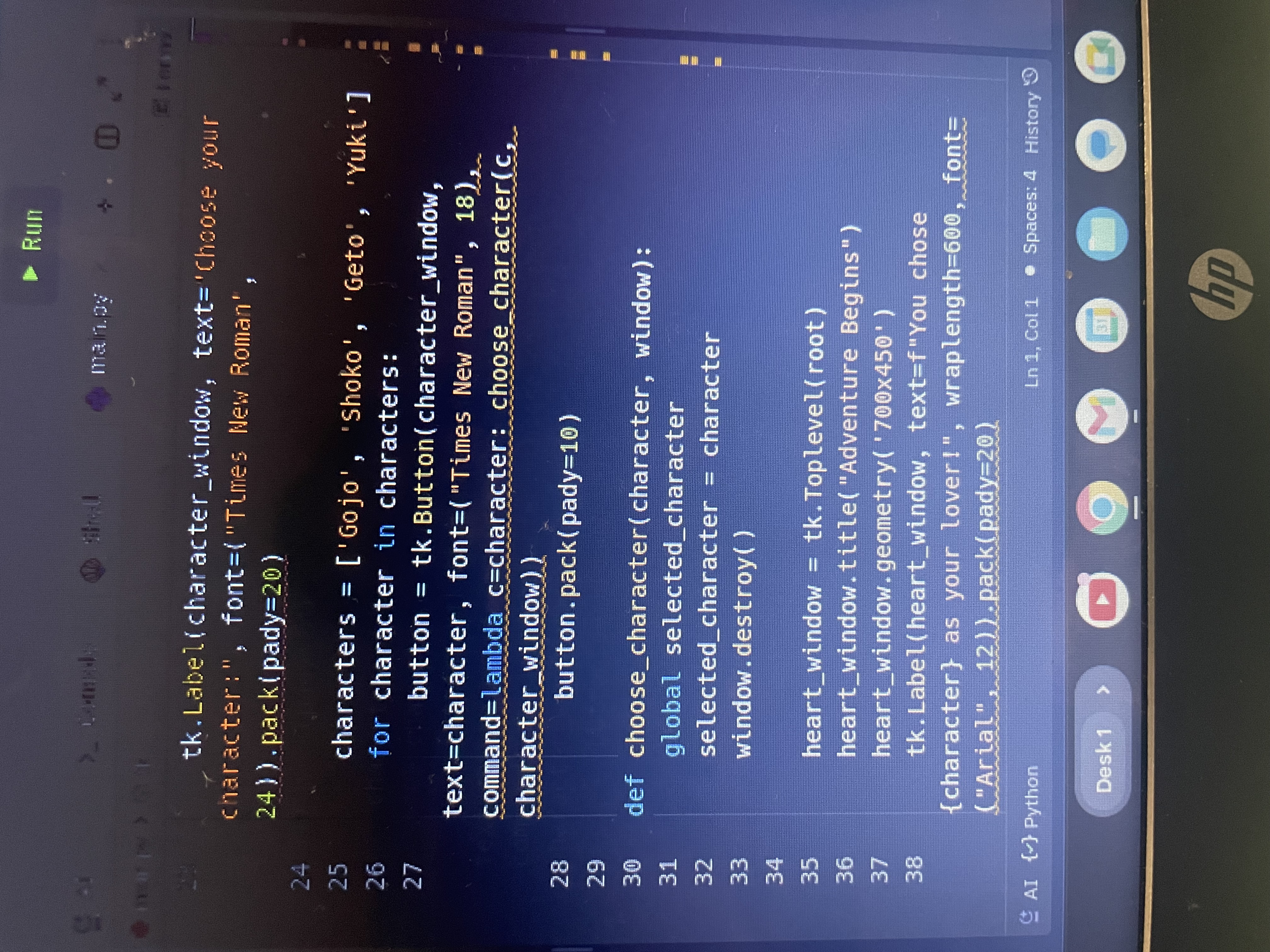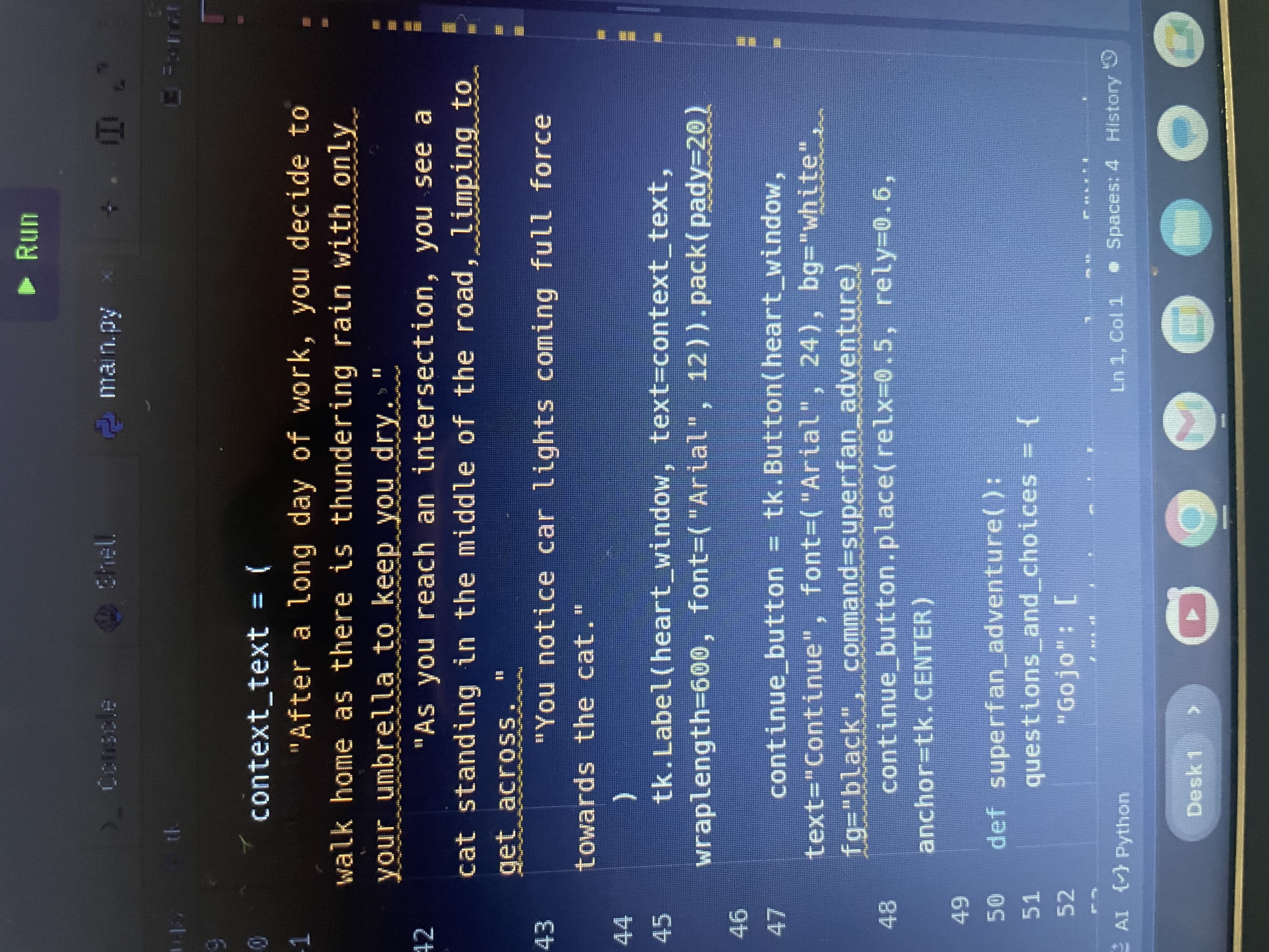 Making a game that allows you to make choices.