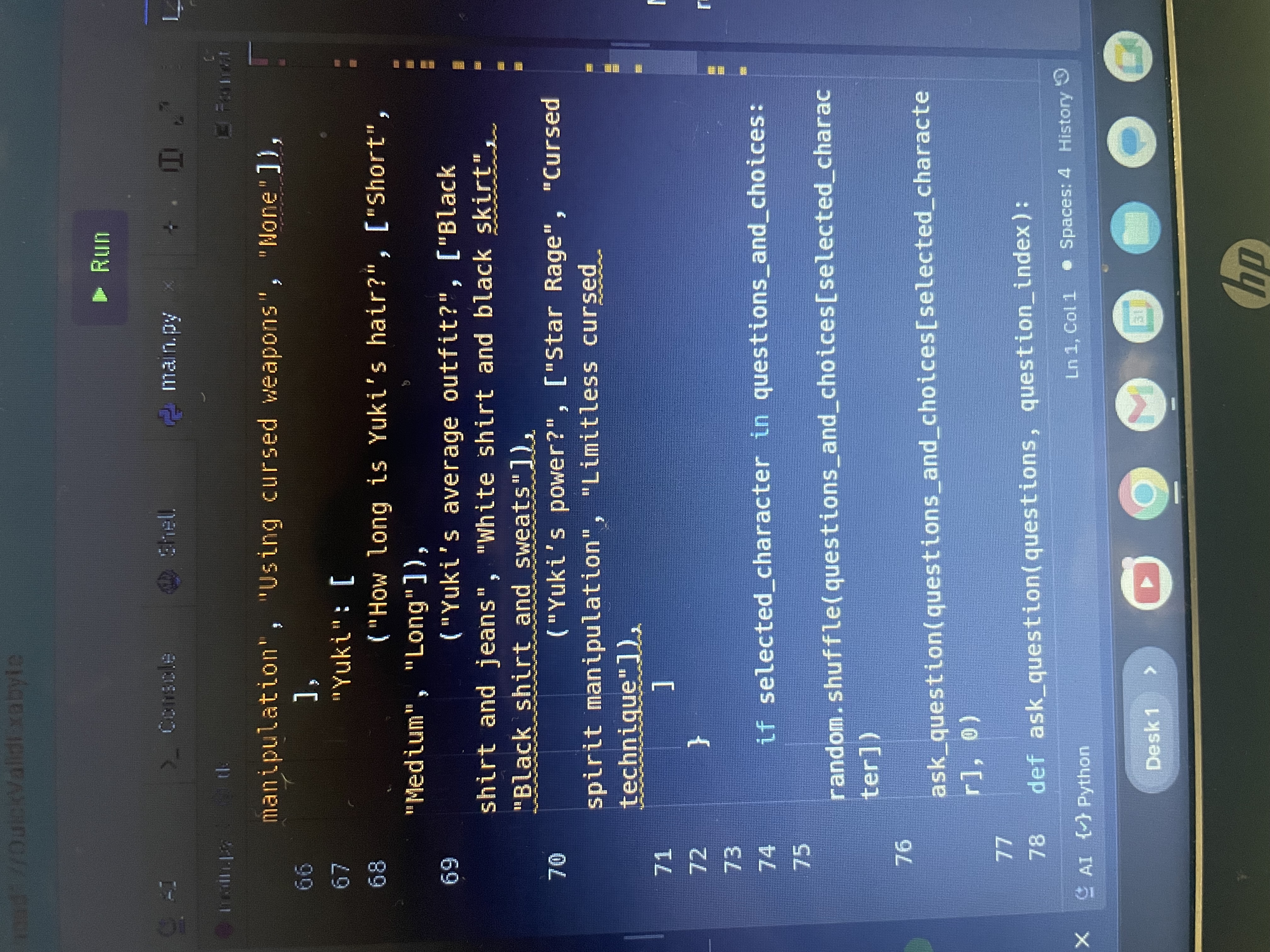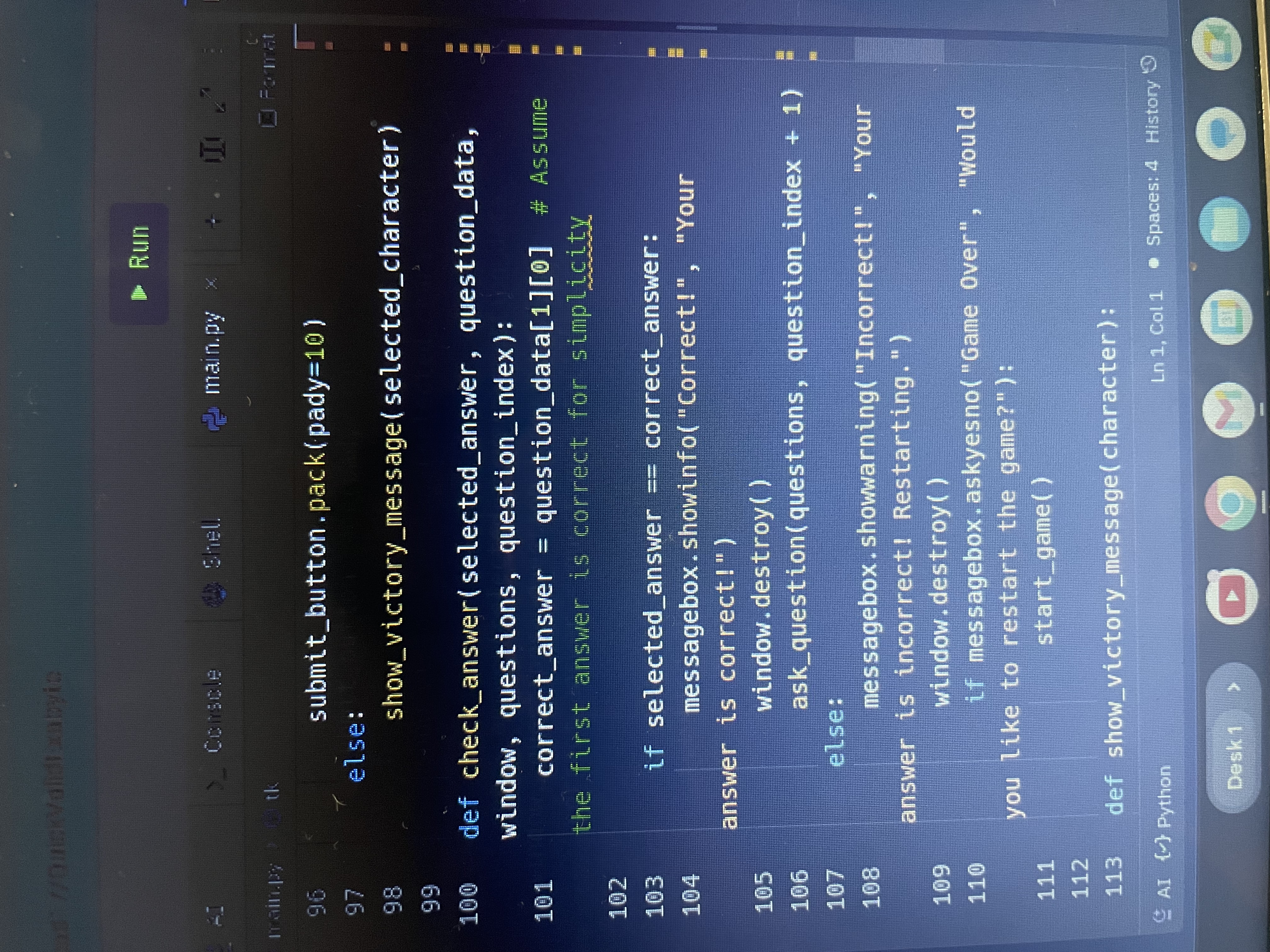 We built it by using Replit and coded questions and answers.