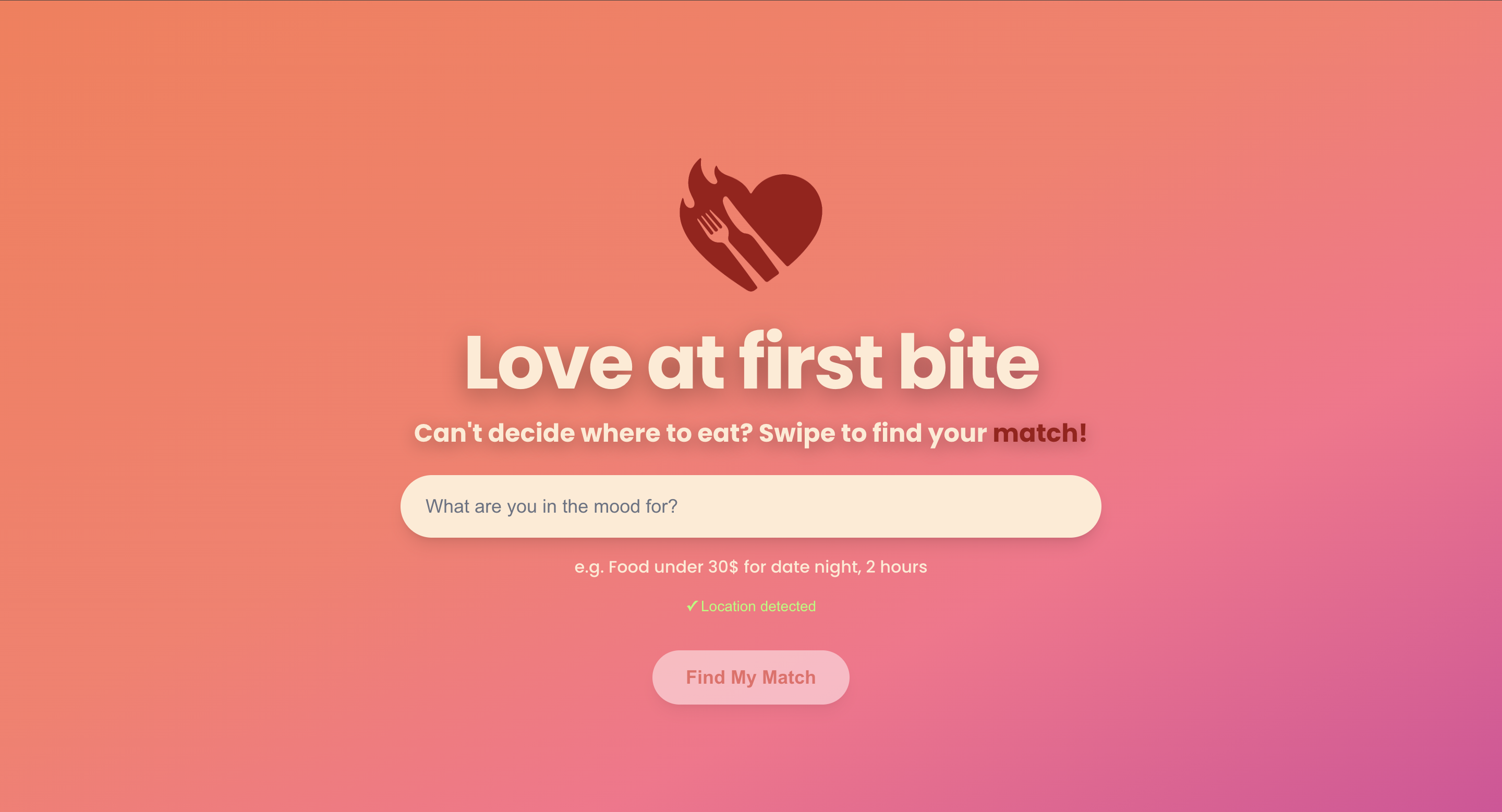 Love At First Bite is a restaurant discovery app that prioritizes decision speed over information overload.