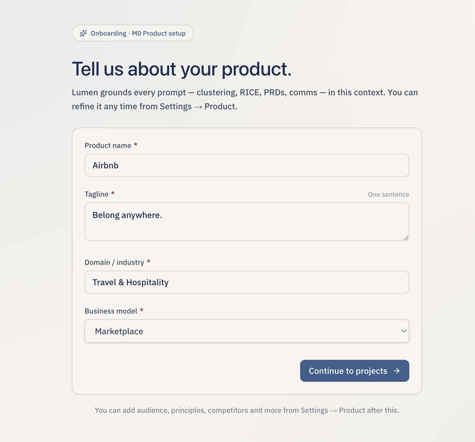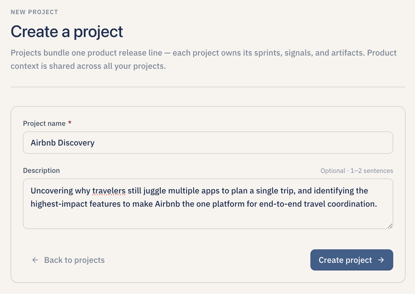 Create your first project to get started A project anchors your product context and every sprint of discovery you run inside Lumen.